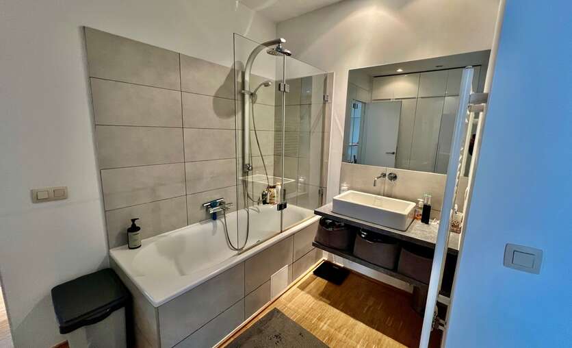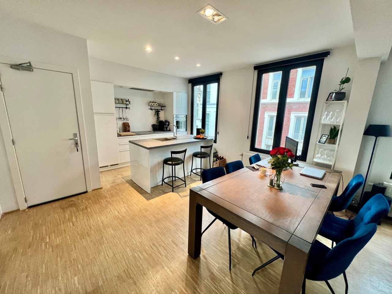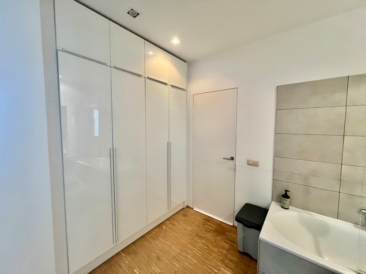 Het hele appartement werd voorzien van parketvloeren, videofonie en ingebouwde verlichting.