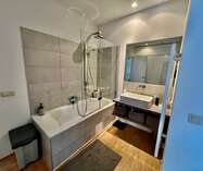 Het sanitaire gedeelte werd uitgerust met ligbad (aparte douchezone), volwaardig douchescherm en een regendouche.