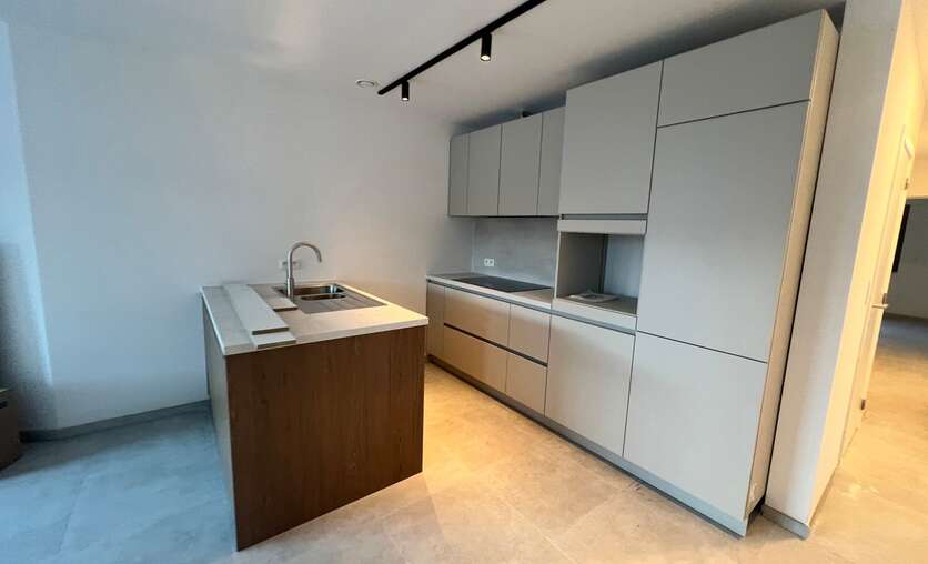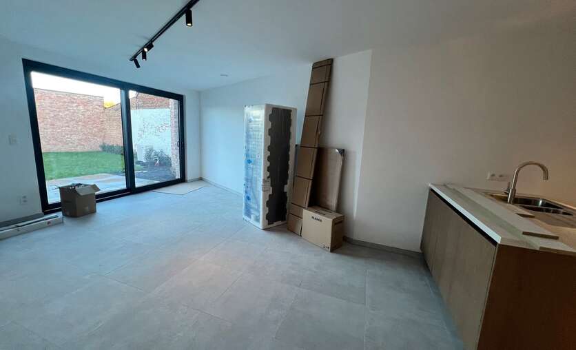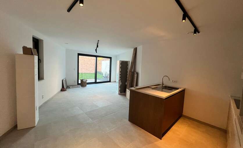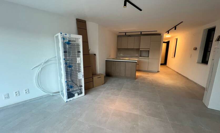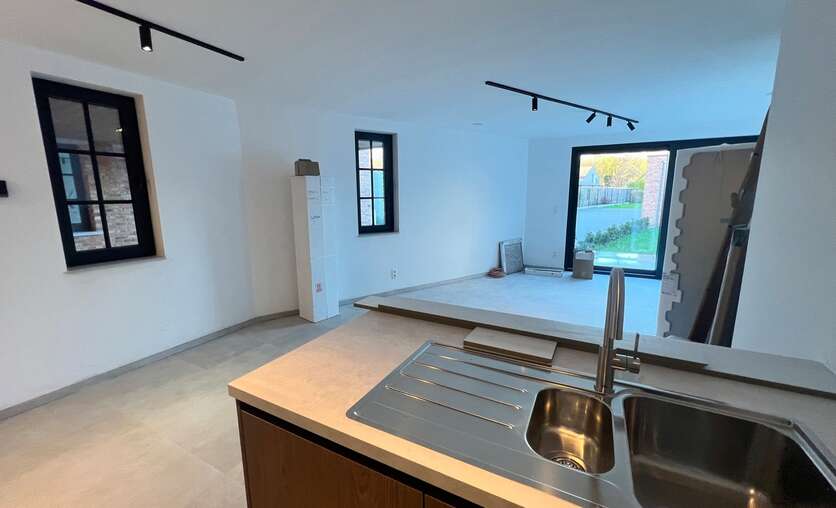 De leefruimte en zithoek zijn voorzien van een open keuken en genieten van een aangename lichtinval.