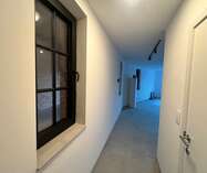 Langs de gemeenschappelijke inkom komen we tot de voordeur van het appartement.