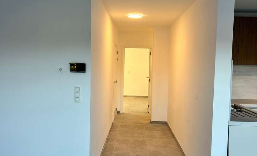 In de hal vinden enerzijds de doorgang tot de leefruimte, anderzijds tot de 2 ruime slaapkamers en badkamer.