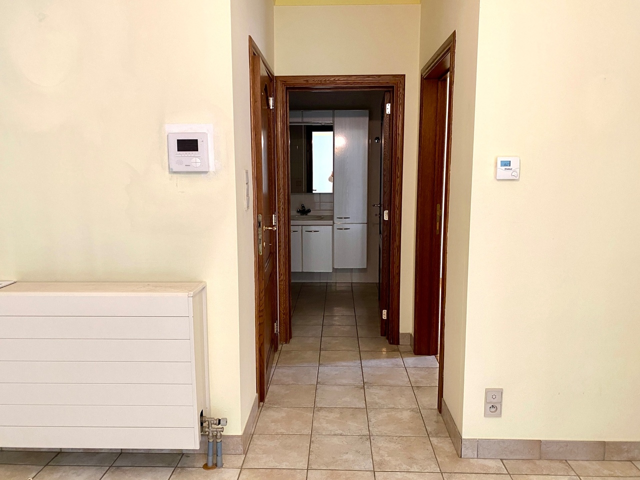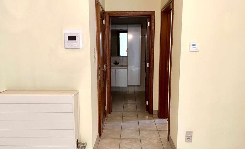 Via de gemeenschappelijke inkom komen we tot het appartement, voorzien van veiligheidsdeur.