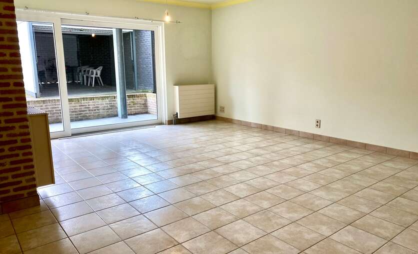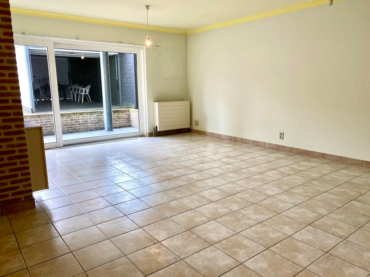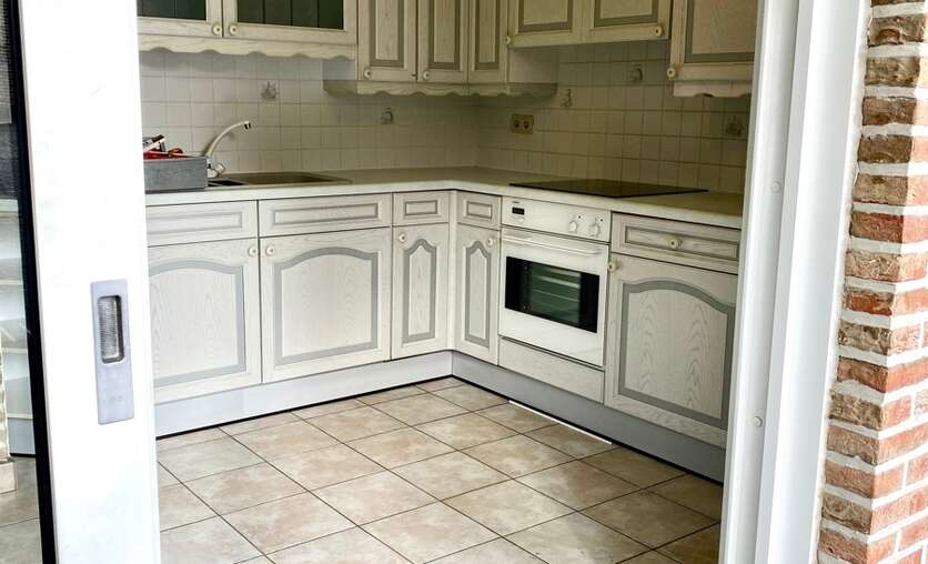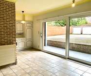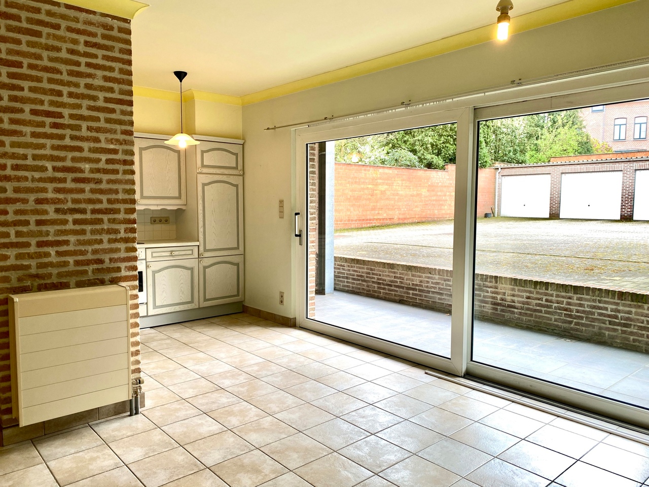 In de leefruimte en keuken genieten we bovendien van een aangename lichtinval en toegang tot het terras via het schuifraam.