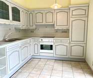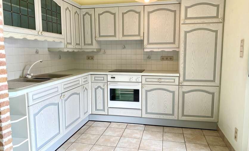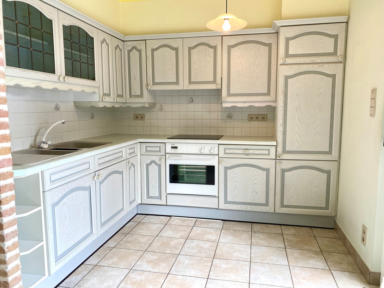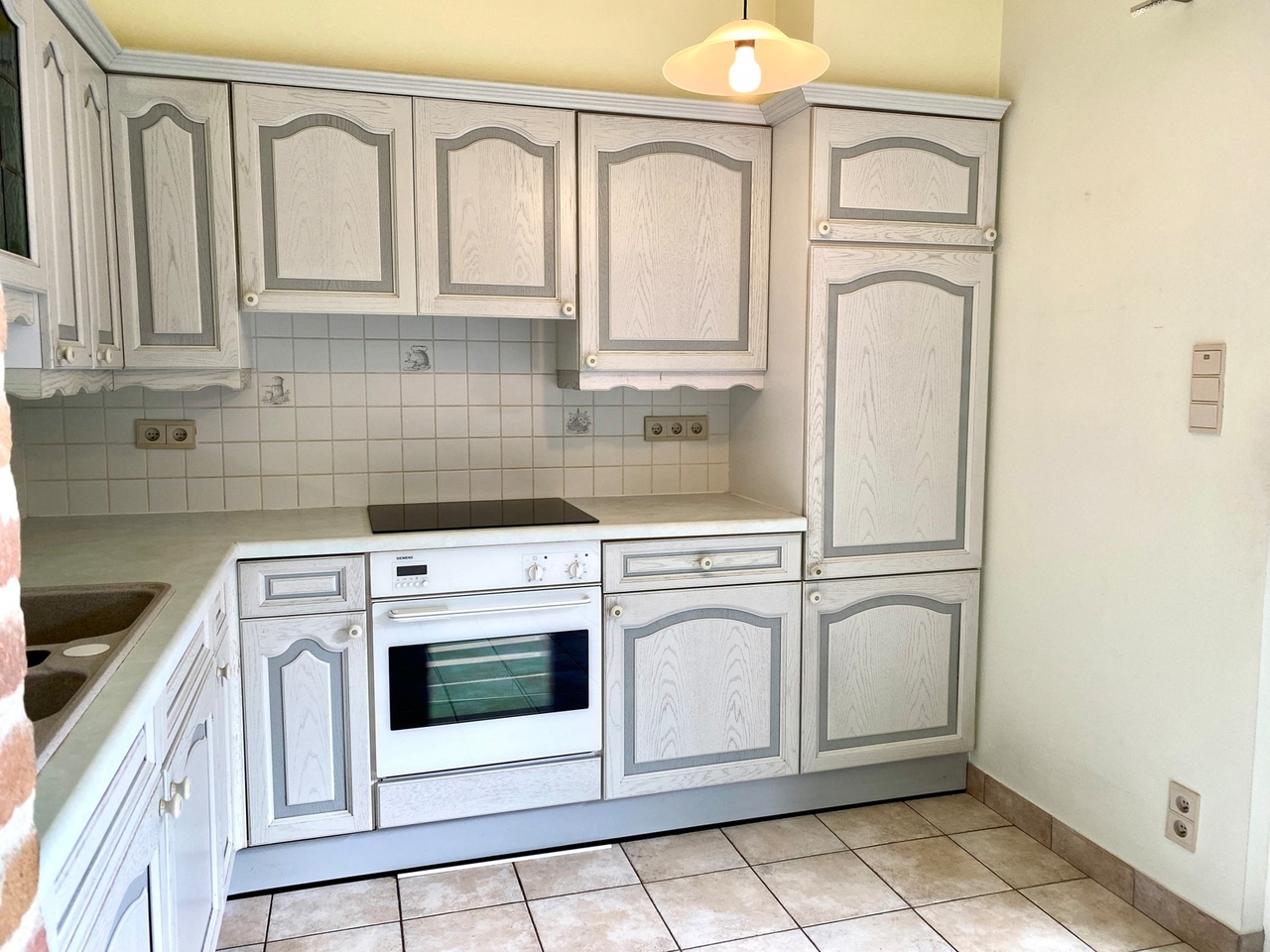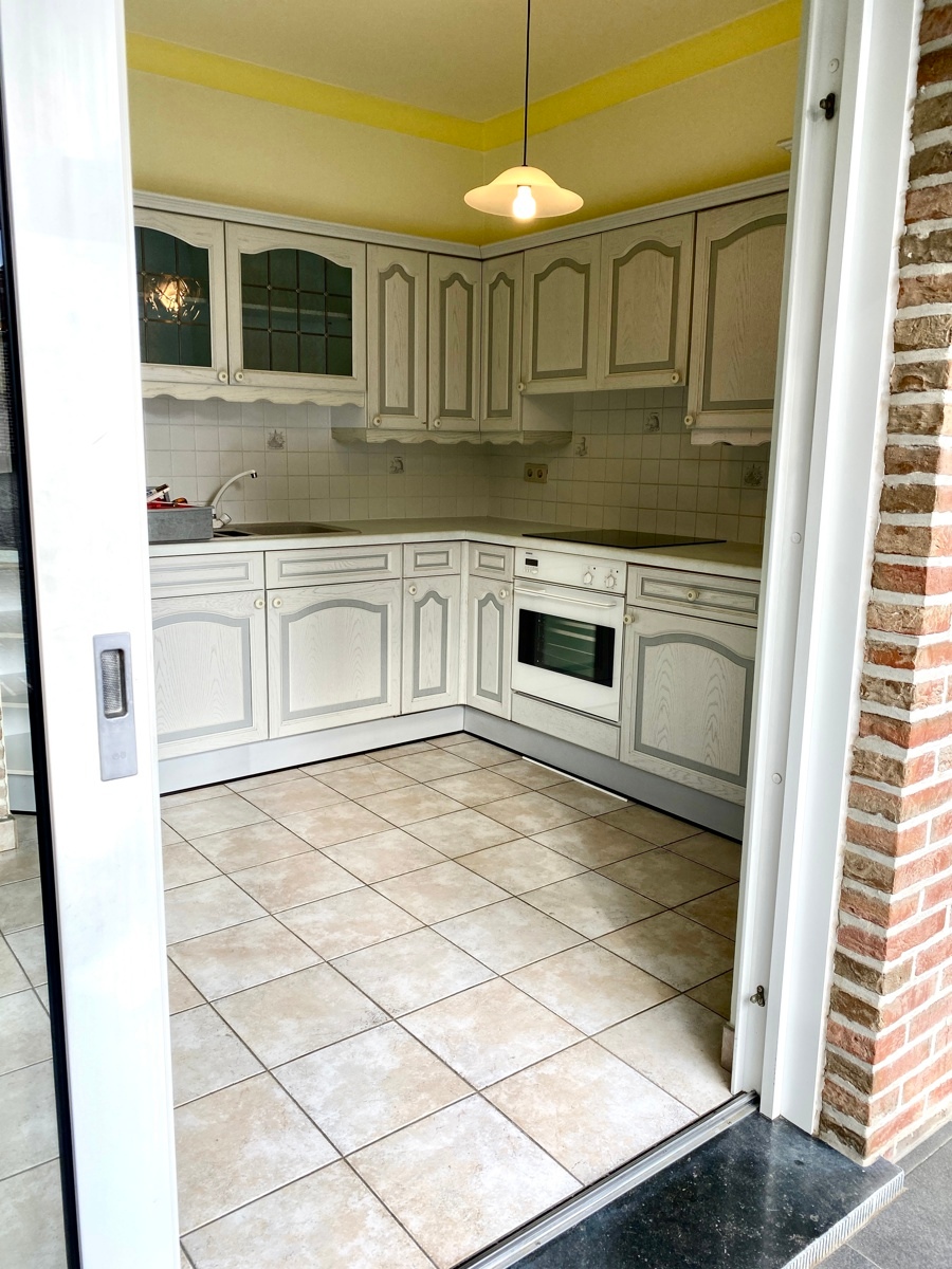De keuken zelf is volledig ingericht en voorzien van de nodige toestellen zoals kookplaat, ijskast, dampkap, spoelbak, oven, ...