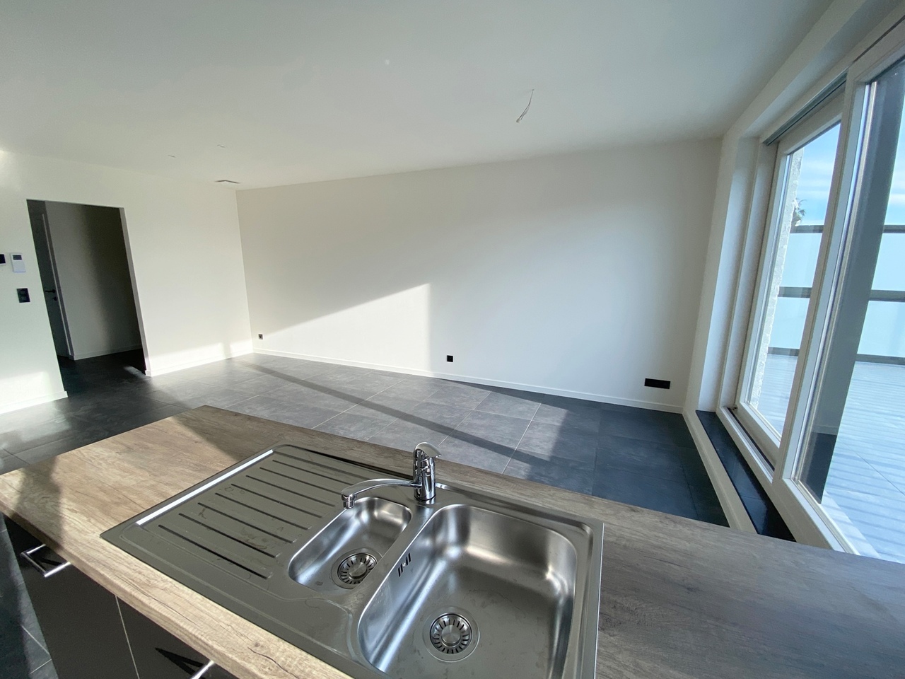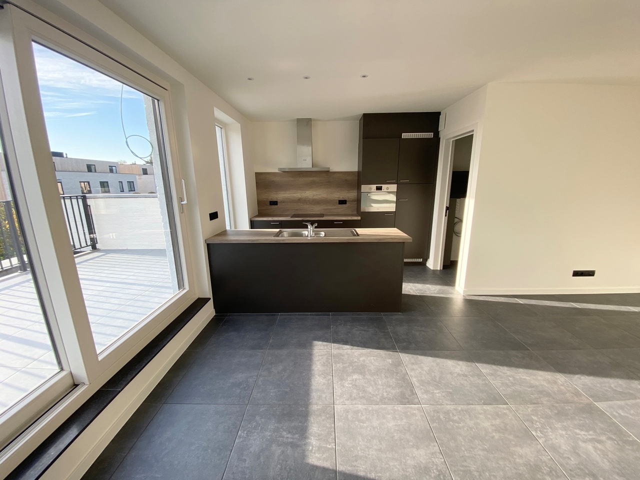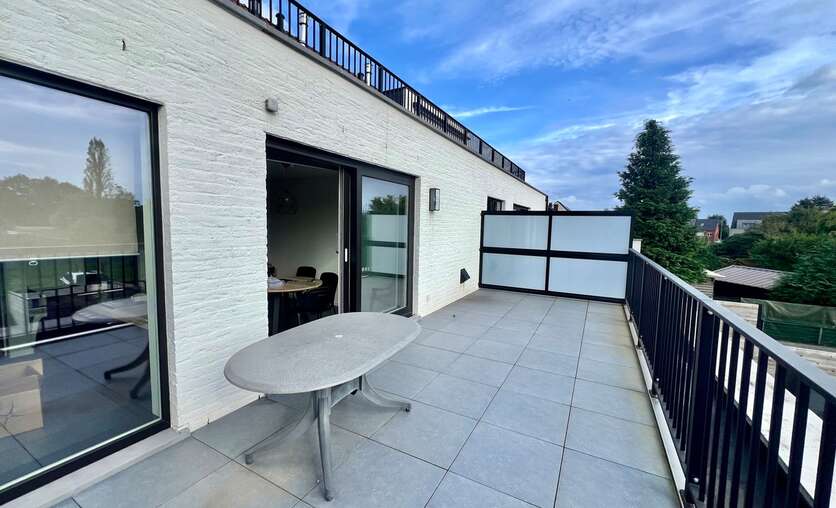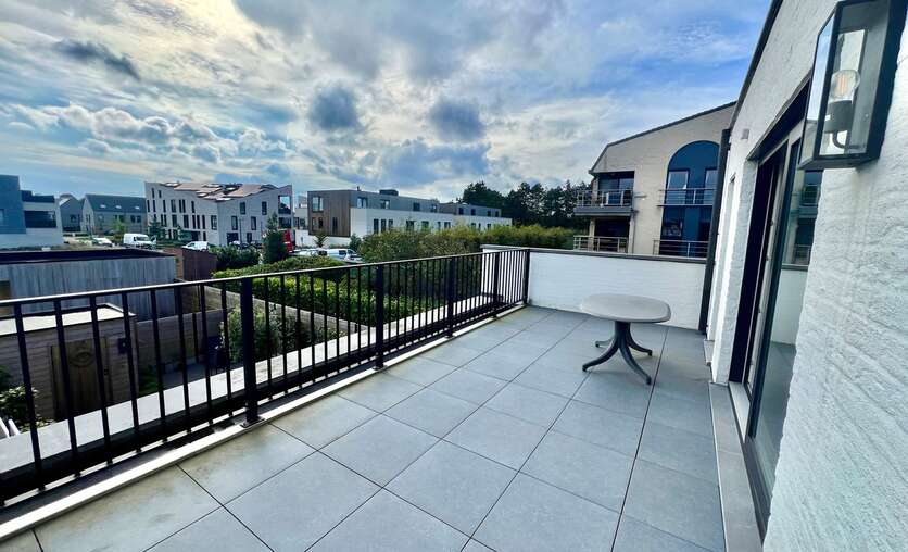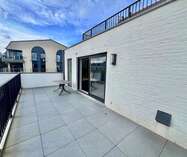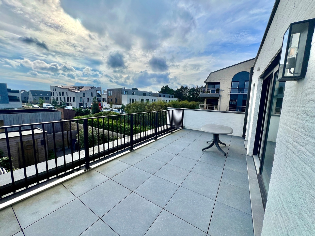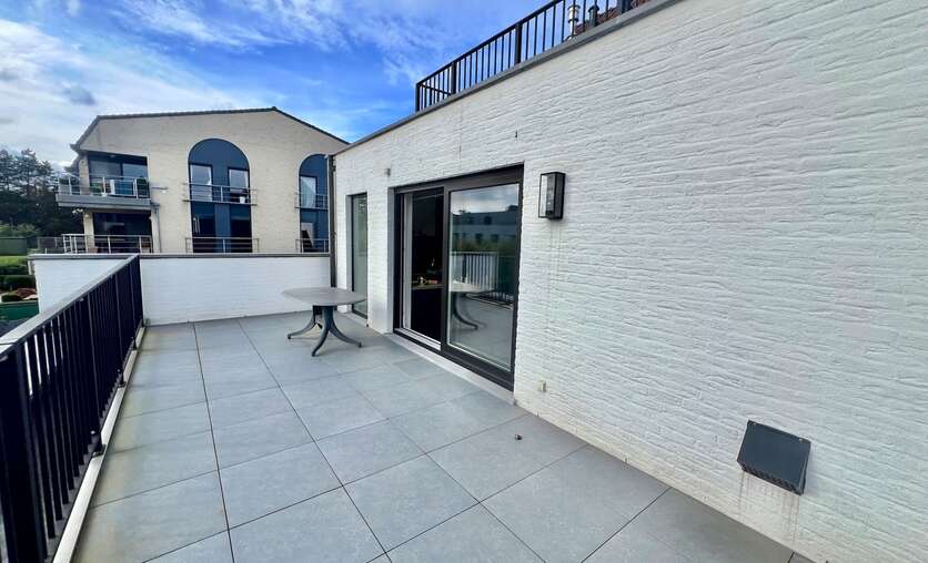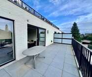 Via het schuifraam hebben we toegang tot het riante zonneterras dat bovendien zuidgericht gesitueerd is.