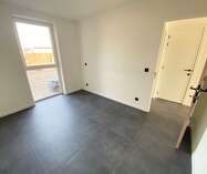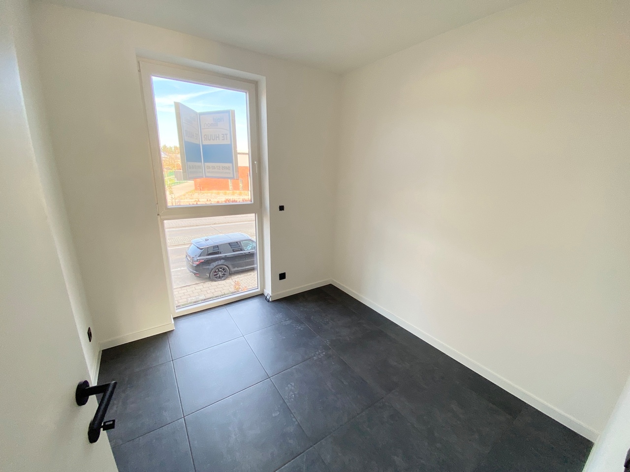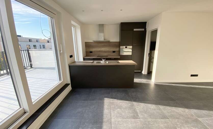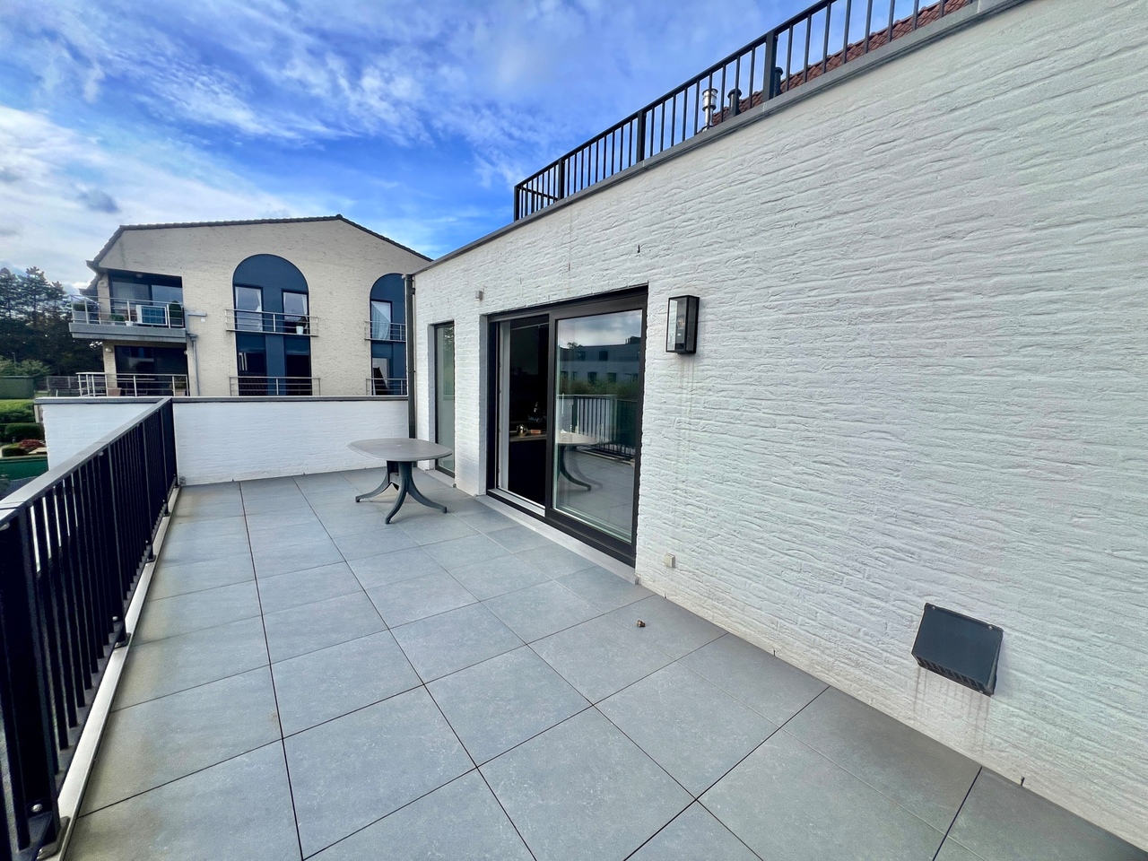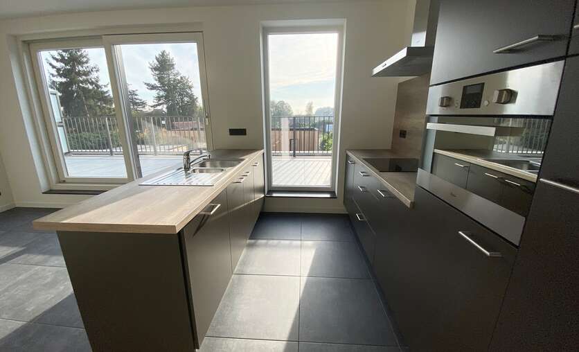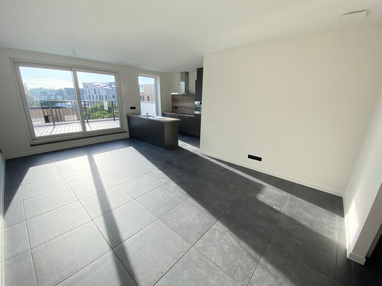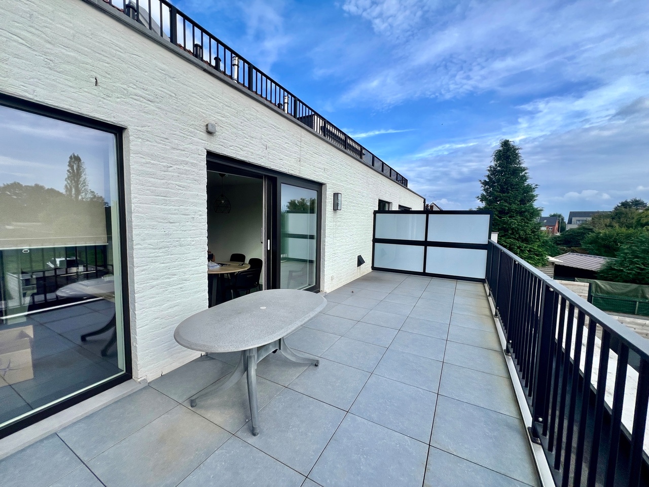 Via het schuifraam hebben we toegang tot het riante zonneterras dat bovendien zuidgericht gesitueerd is.