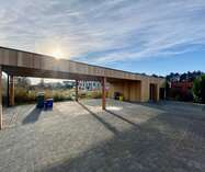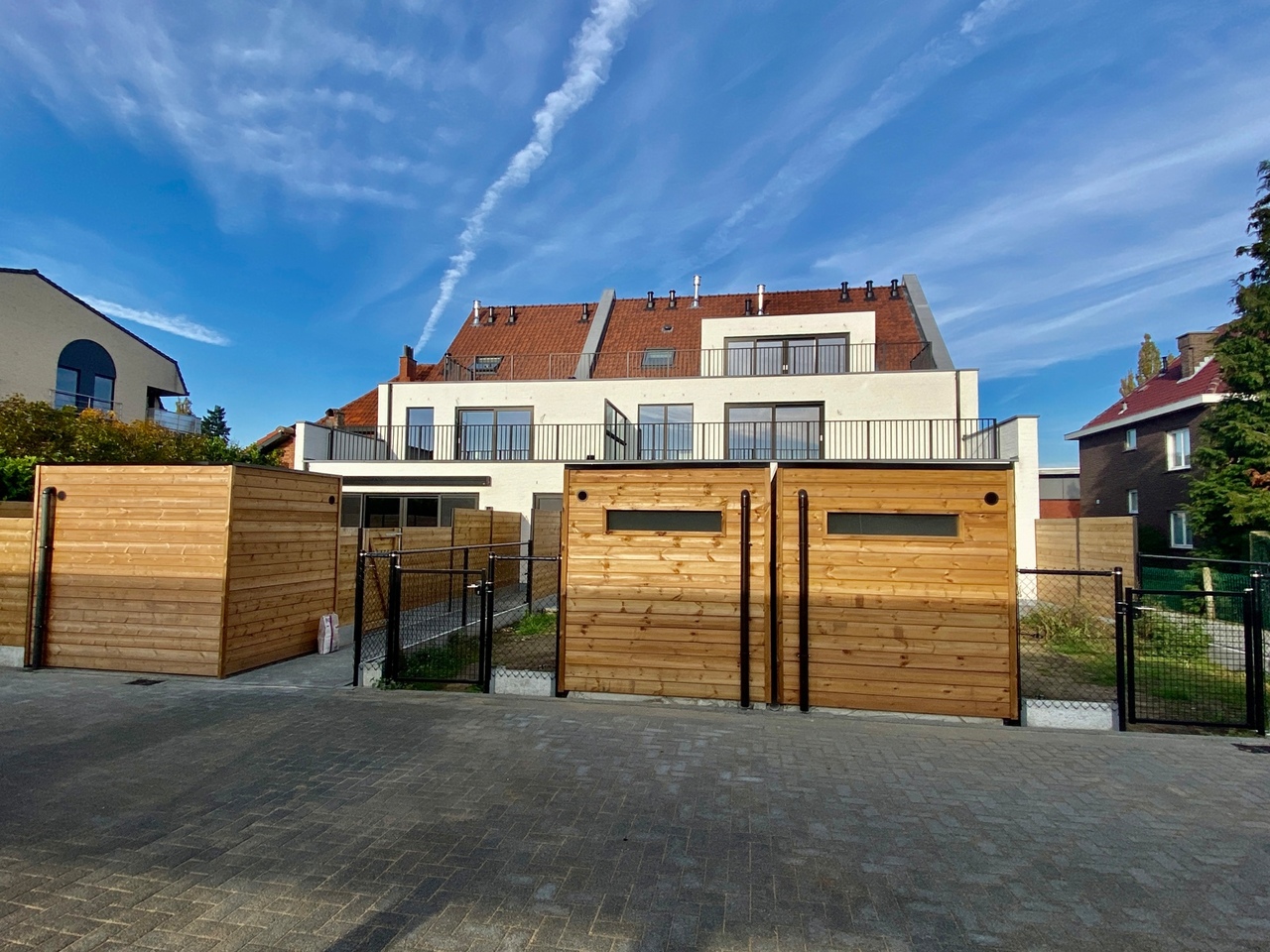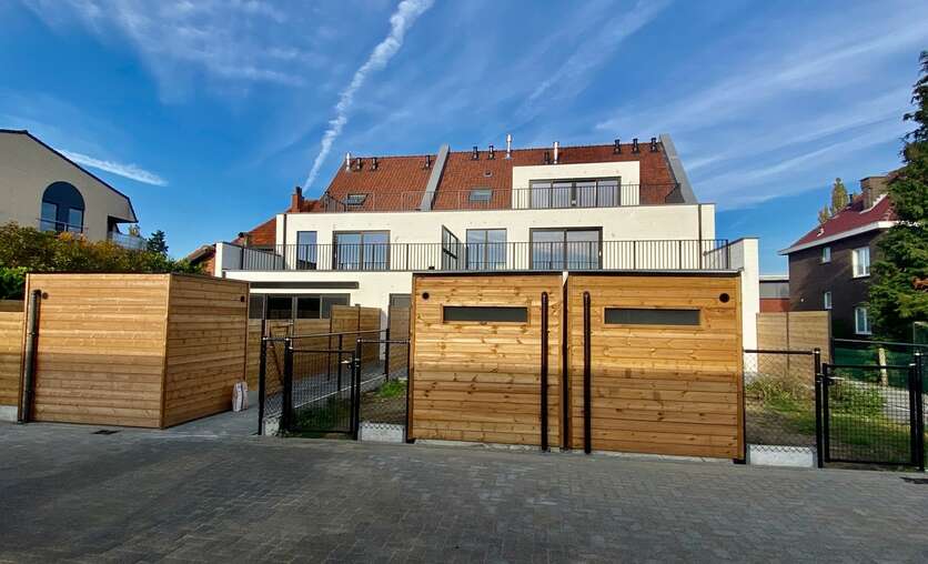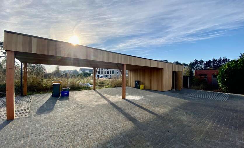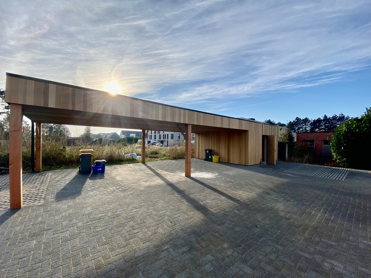 Achteraan het gebouw is er een carport ter beschikking en een afgesloten fietsenberging.