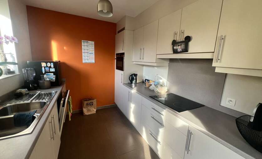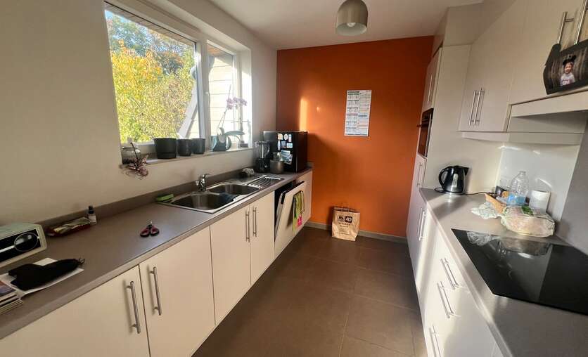 In de keuken zijn de nodige kasten en toestellen voorzien.
