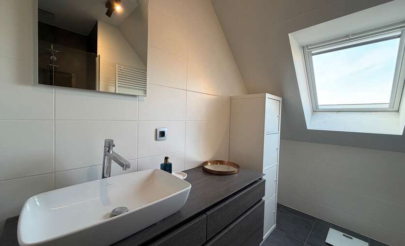 Deze is ingericht met inloopdouche en dubbel labavomeubel.