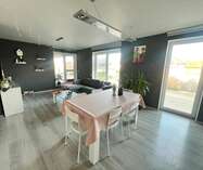 Verder komen we in de lichtrijke leefruimte met open ingerichte keuken en de zithoek geniet van uitzicht en doorgang tot het aangename inpandig terras.