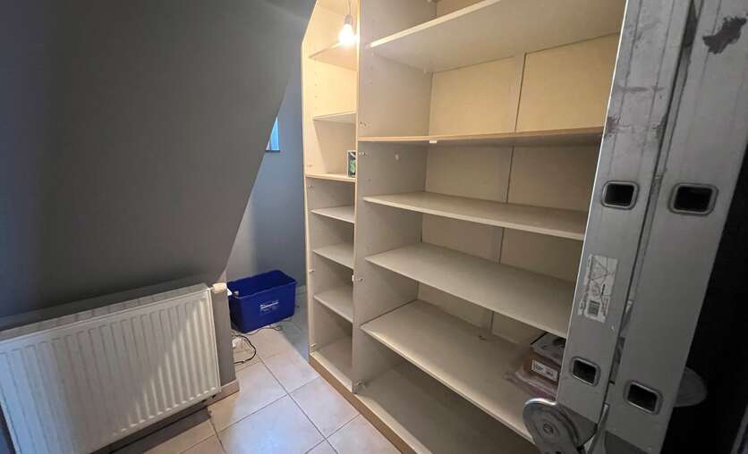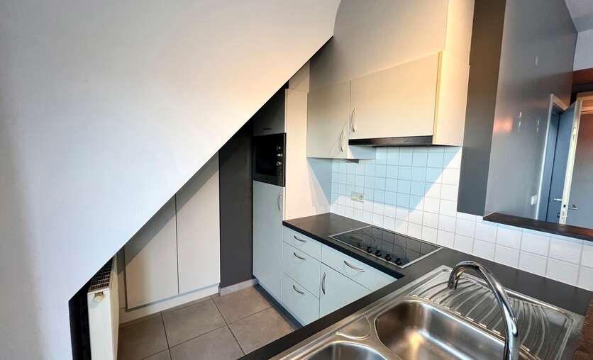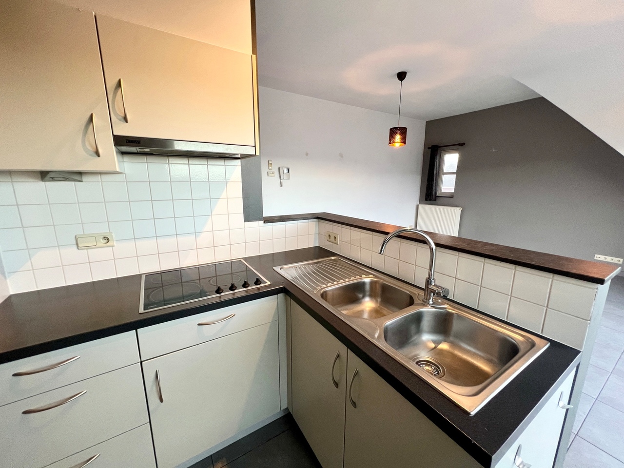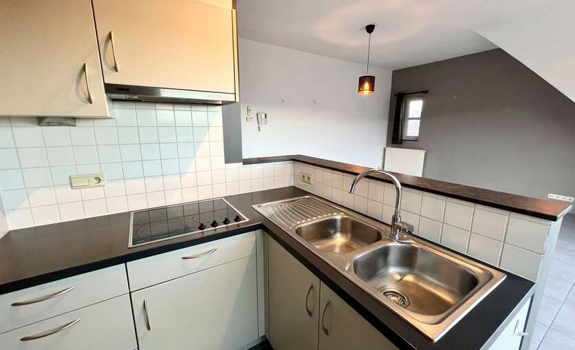 In de open keuken zijn voldoende kasten alsook de nodige toestellen voorzien.