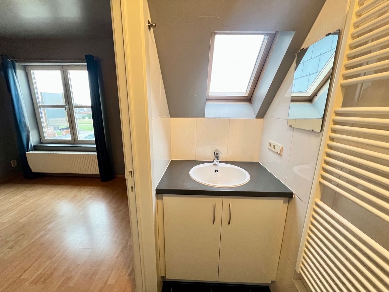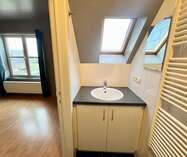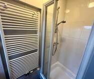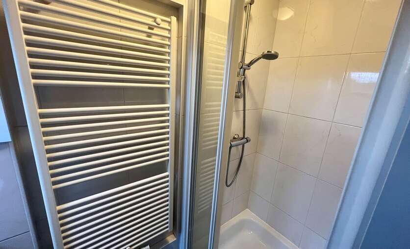 Verder is er de badkamer, ingericht met lavabomeubel en douche.
