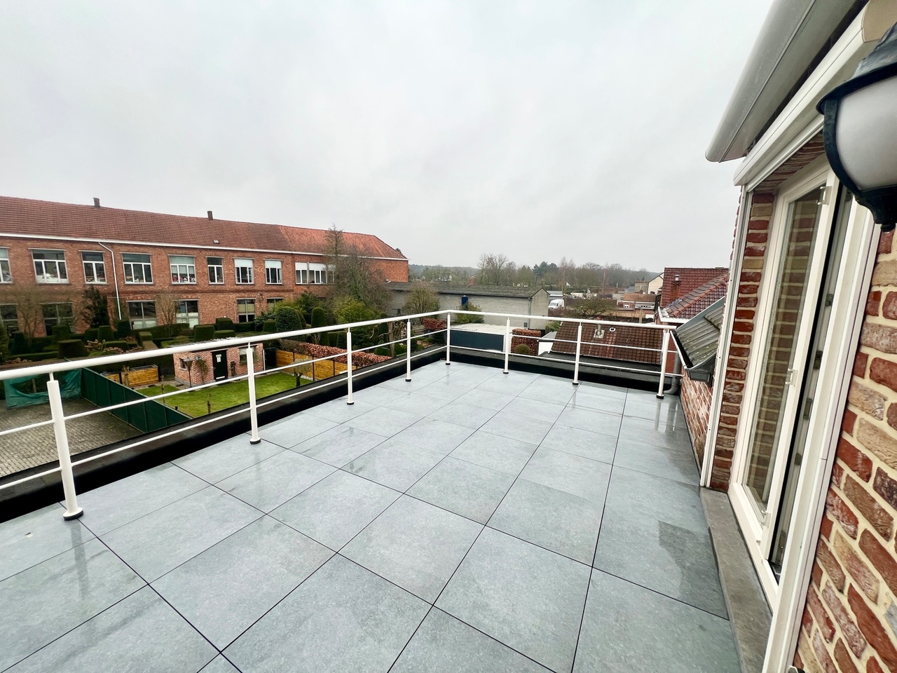 Het terras is toegankelijk via de leefruimte en biedt voldoende plaats om te genieten van zonnige momentjes.