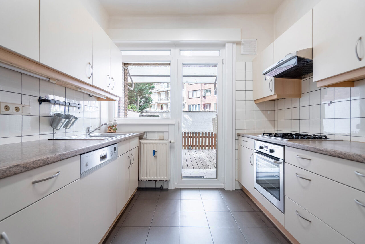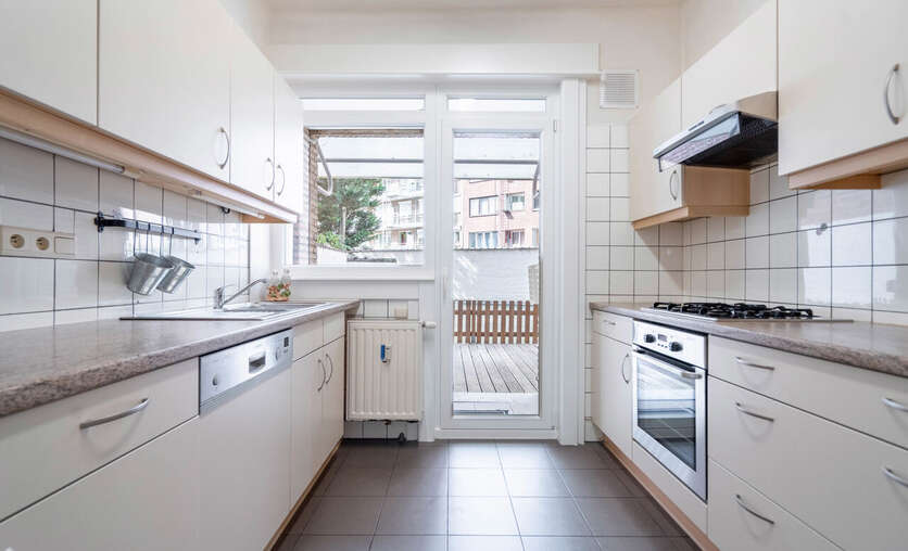 Aanpalend vinden we de keuken, dewelke voorzien is van toegang tot het prachtig ruime terras.
