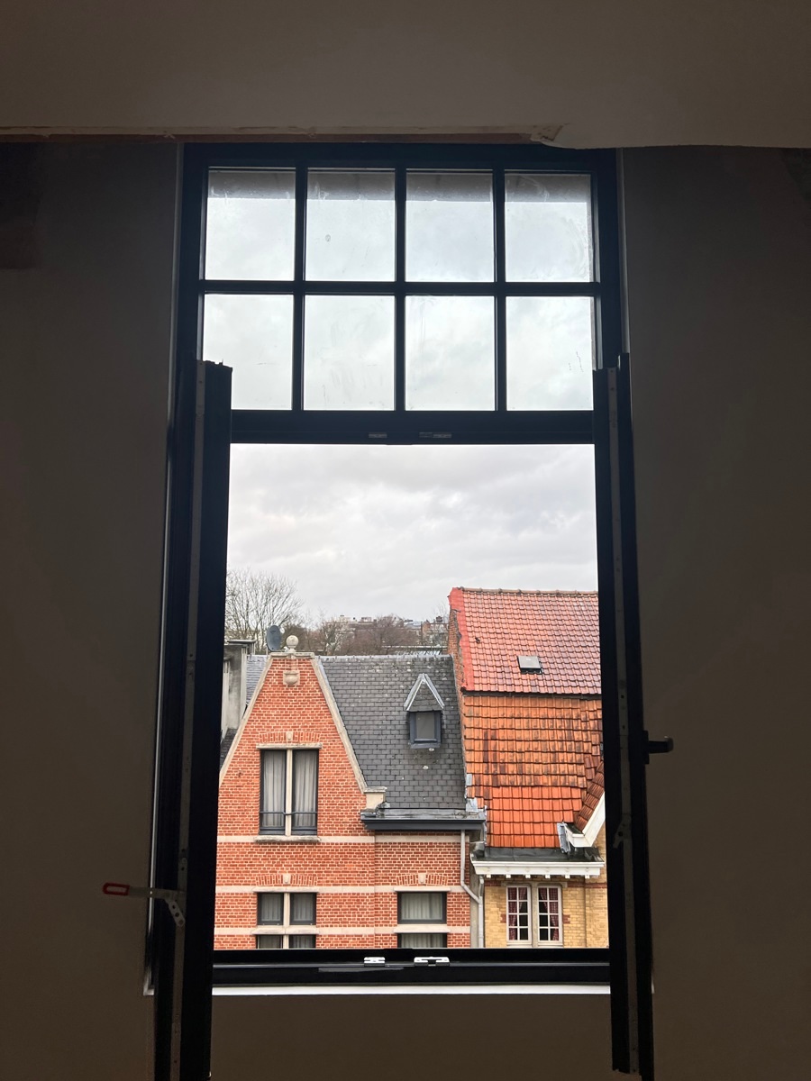 Aan de voorzijde vinden we prachtige raampartijen, reeds vernieuwd qua beglazing en schrijnwerk.