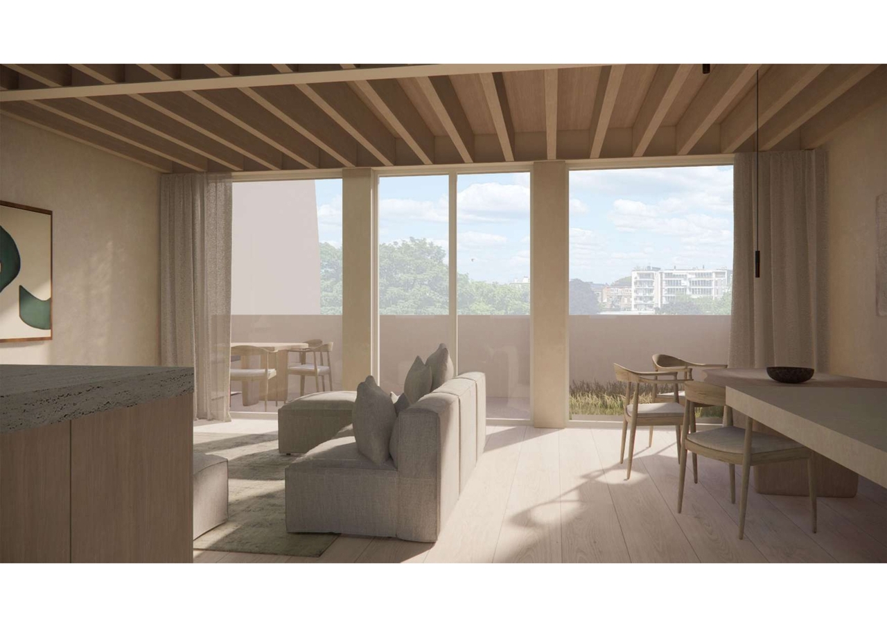 Bestaand appartement met vergunning voor een optopping/uitbreiding tot 105m² plus dakterras en groendak.