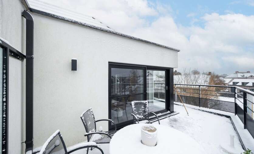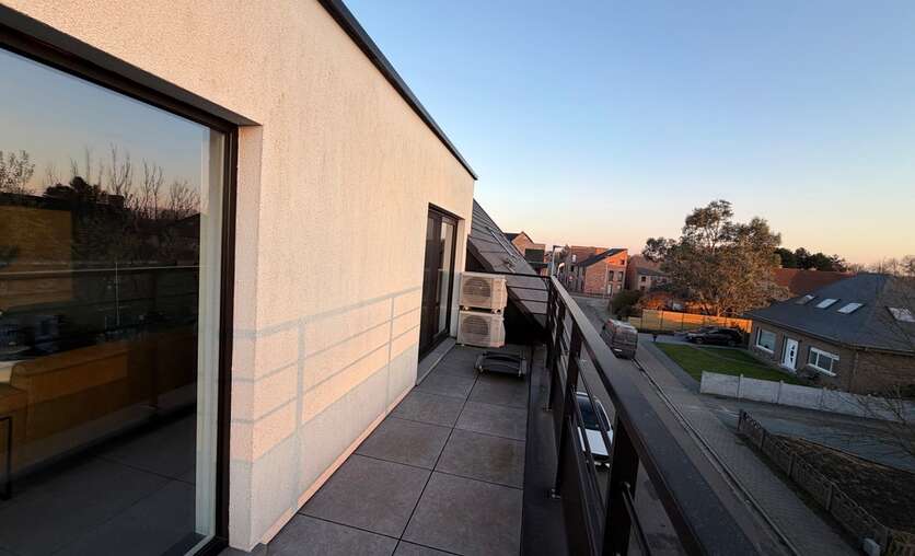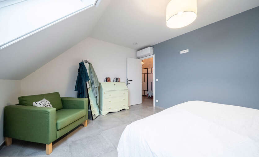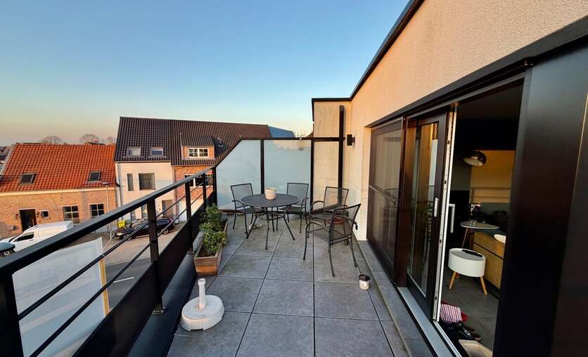 Een schuifraam biedt toegang tot het zeer grote zonneterras (24m²).
