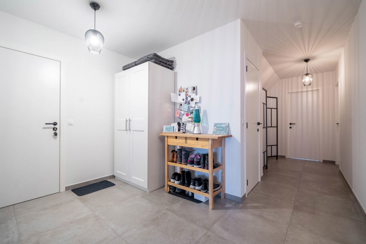 In de hal van het appartement hebben we een ruime inkom met vestiaire en apart toilet.