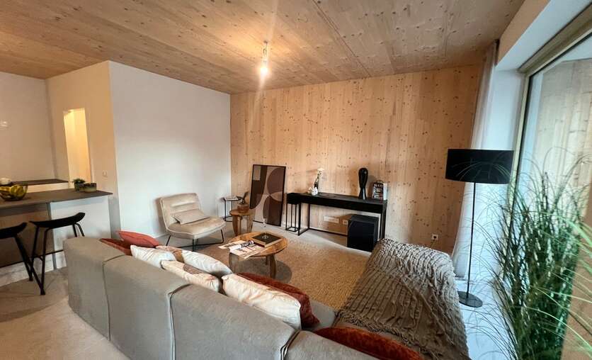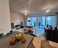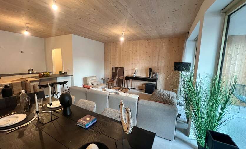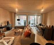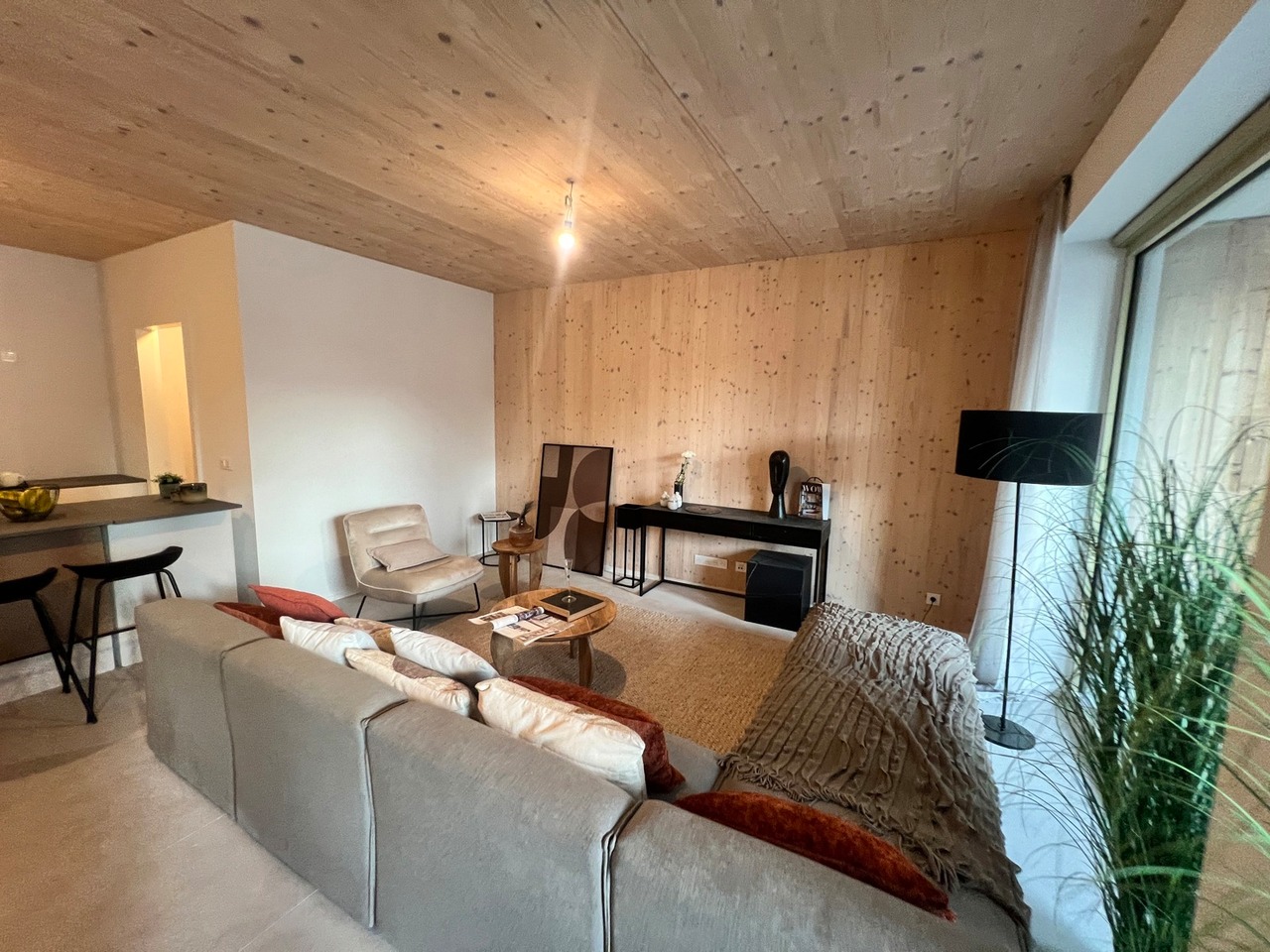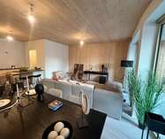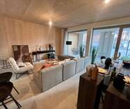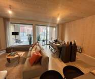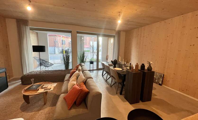 Aansluitend hebben we de lichtrijke leefruimte met toegang tot het grote zonneterras aan de voorzijde.