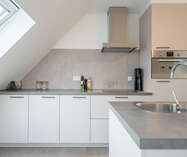 Deze is voorzien van de nodige toestellen zoals vaatwasser, koelkast, kookplaat, combi-oven, dampkap, ...