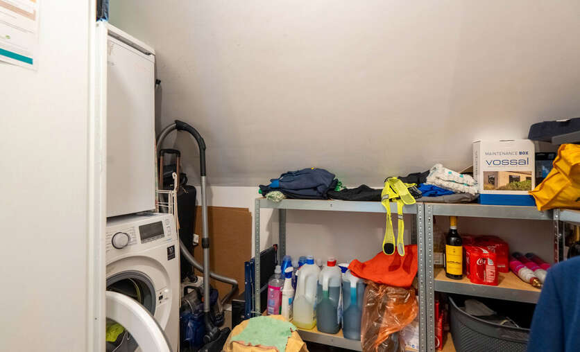 Hier vinden we een apart gastentoilet, grote berging en vestiaire.