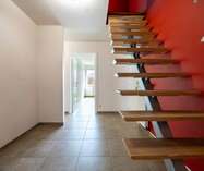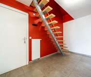 Via de gemeenschappelijke inkomhal bereiken we met de trap de private inkom van het appartement, gelegen op de 1ste verdieping.