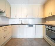 Aansluitend bevindt zich de volledig uitgeruste keuken met kasten en toestellen.