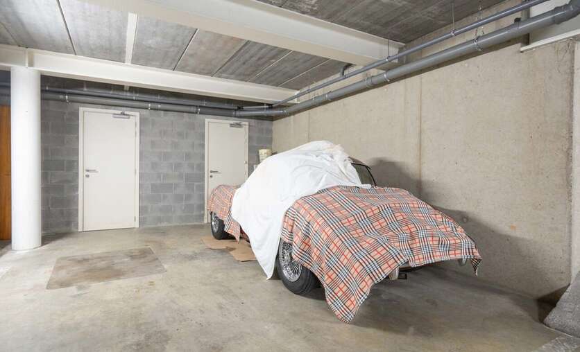 Het appartement beschikt over een private kelderberging die werd ingericht met rekken.