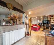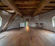 Via de prachtige eiken trap komen we tot de woonvertrekken van de molen, op de eerste verdieping gelegen.