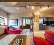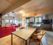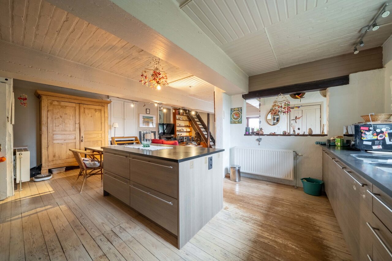 Aansluitend hebben we de eetkamer met open keuken. Verder vinden we nog een apart toilet en bering.