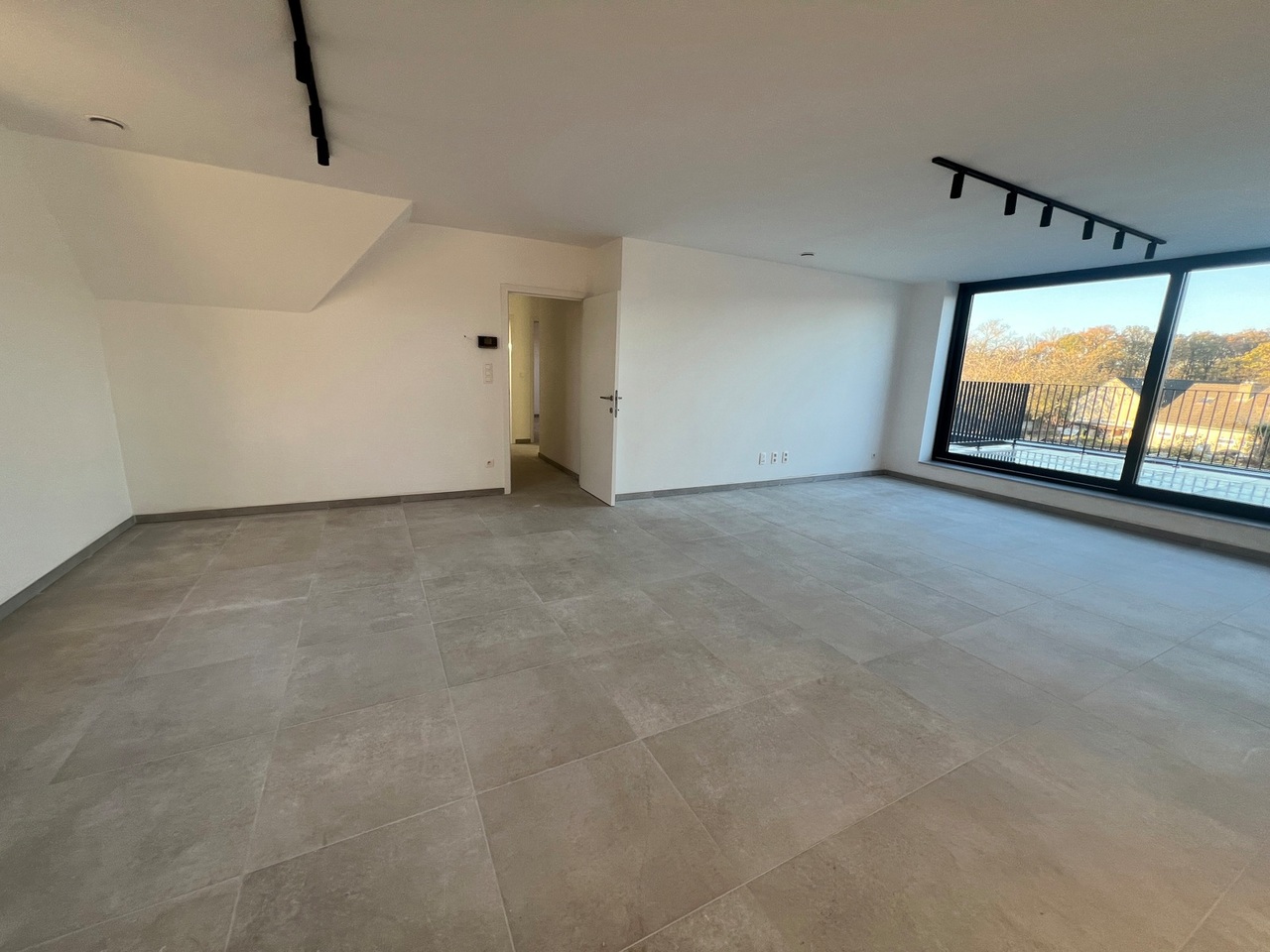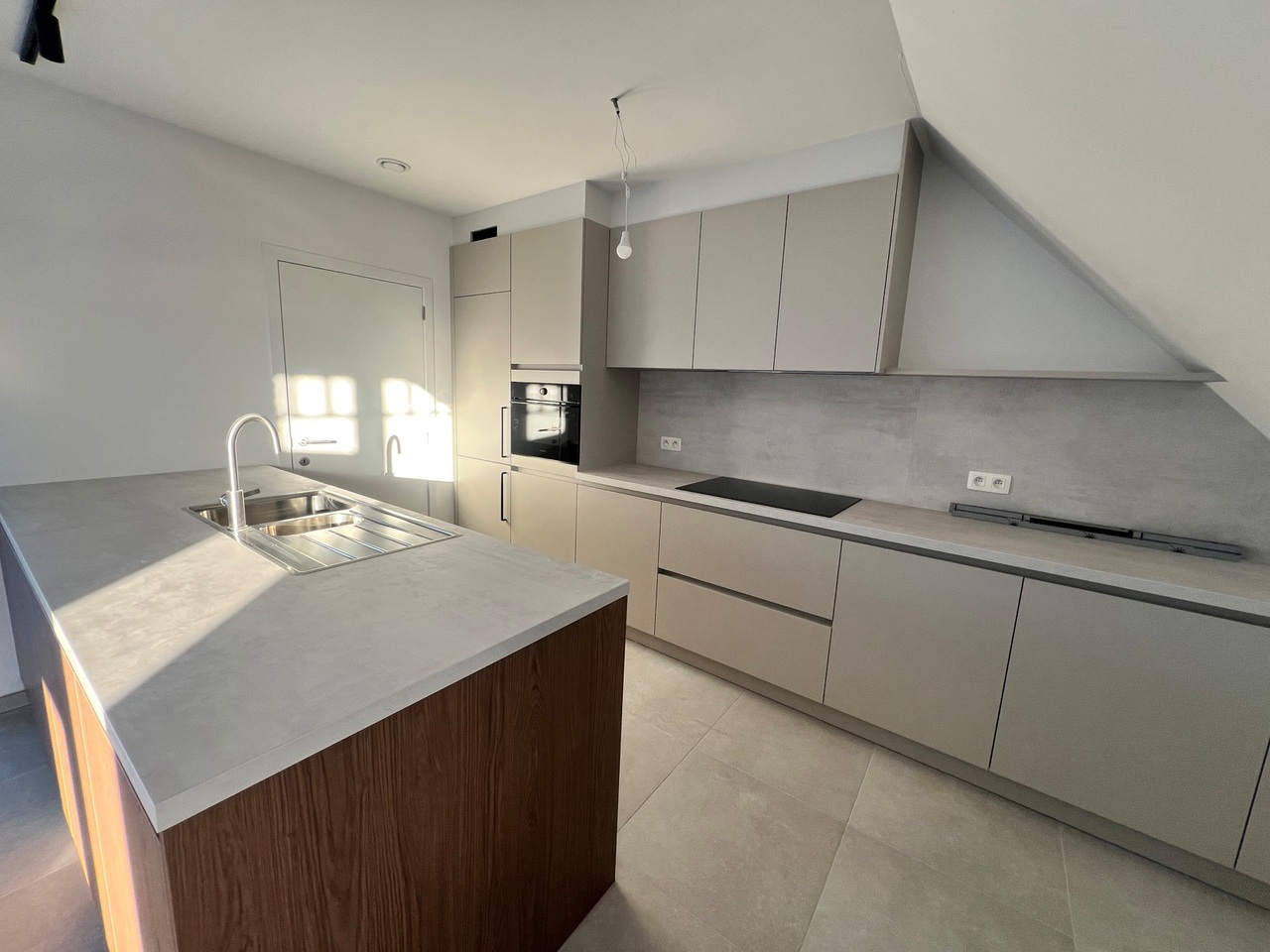 De leefruimte en zithoek zijn voorzien van een open keuken en genieten van een aangename lichtinval.