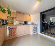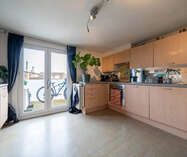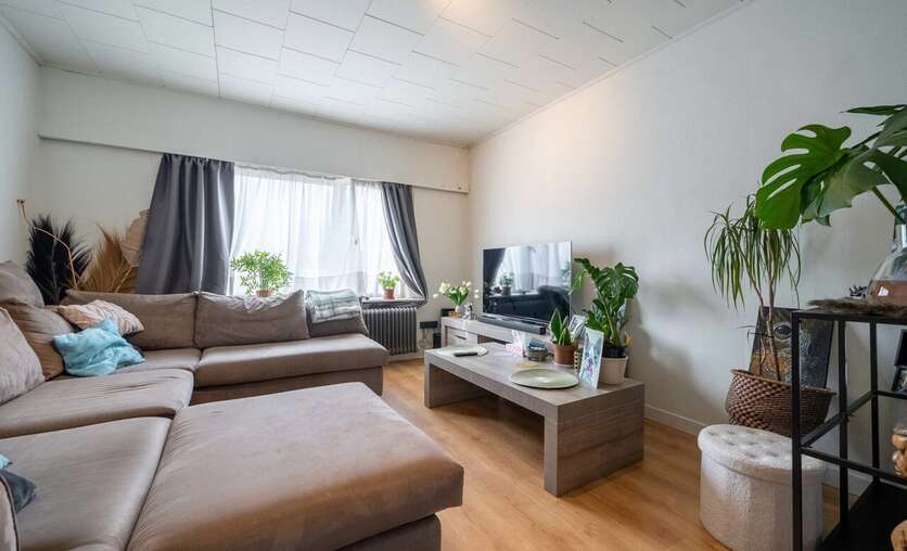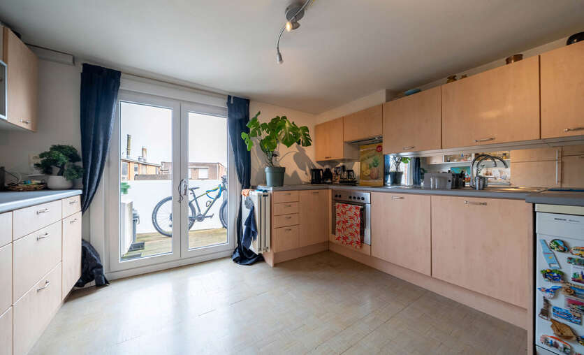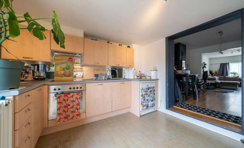 De woonst omvat een lichtrijke leefruimte, een ingerichte keuken, slaapkamers en een badkamer.