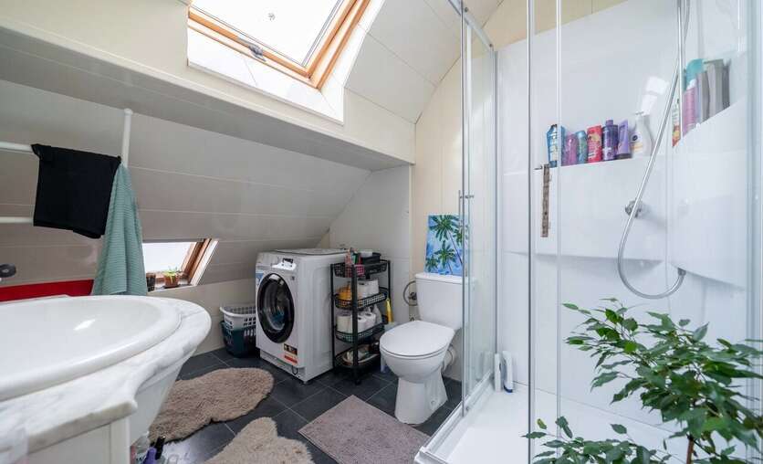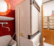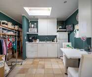 Achteraan vindt u extra bergruimte en/of een werkruimte, evenals sanitaire voorzieningen.