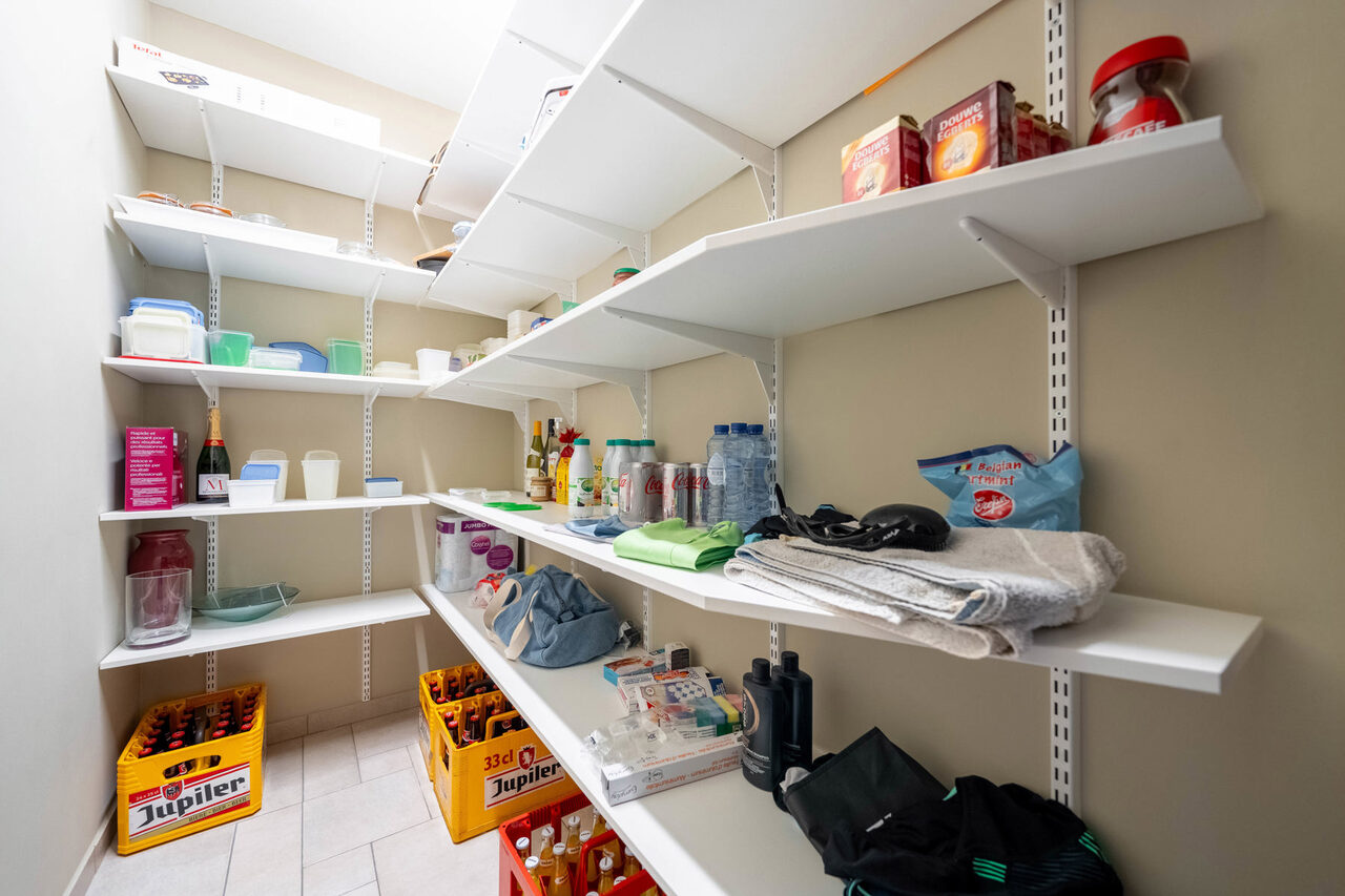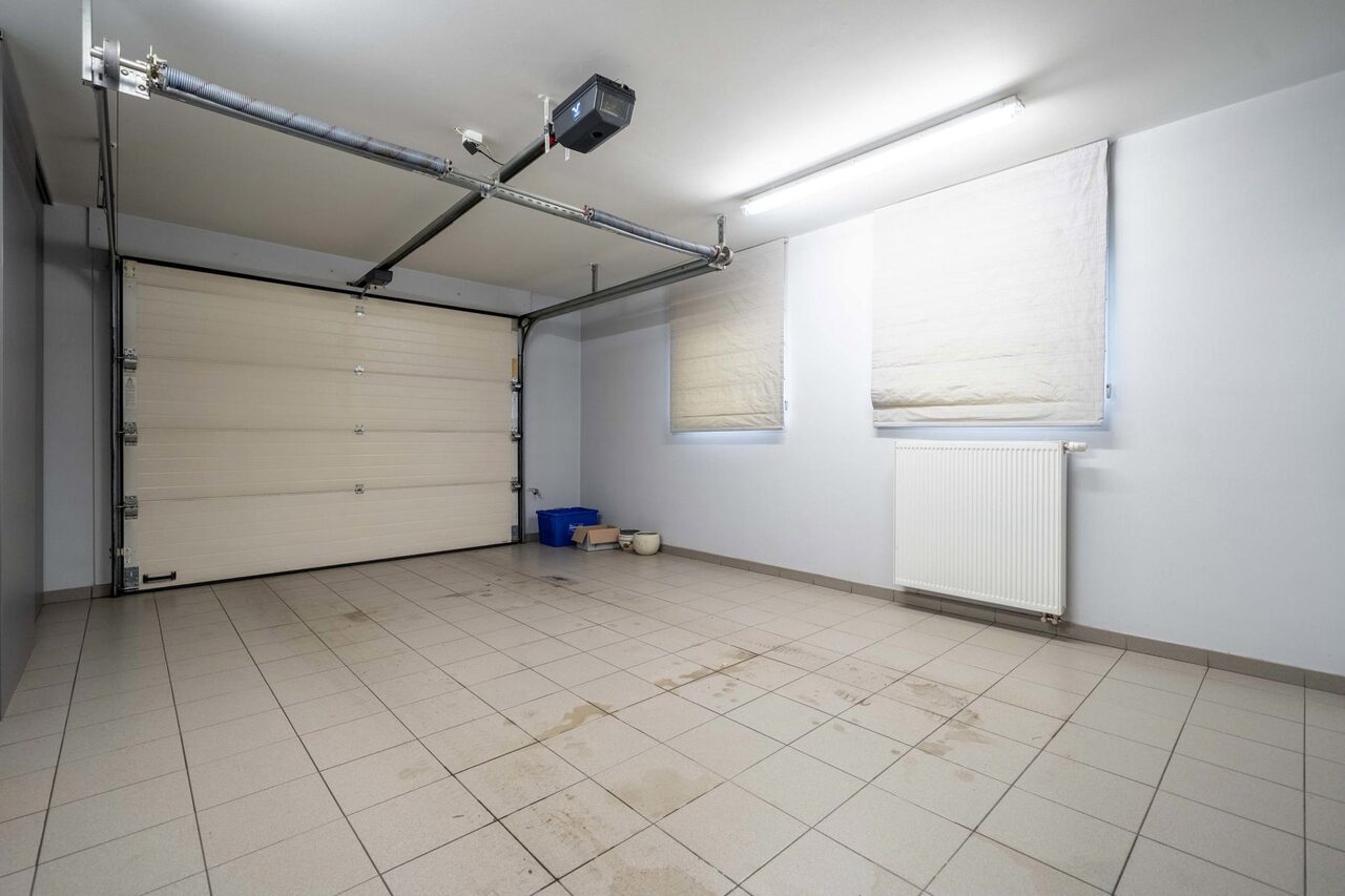De inpandige garage is ingericht met voorzieningen voor wasmachine en droogkast en beschikt over een automatische poort.
