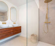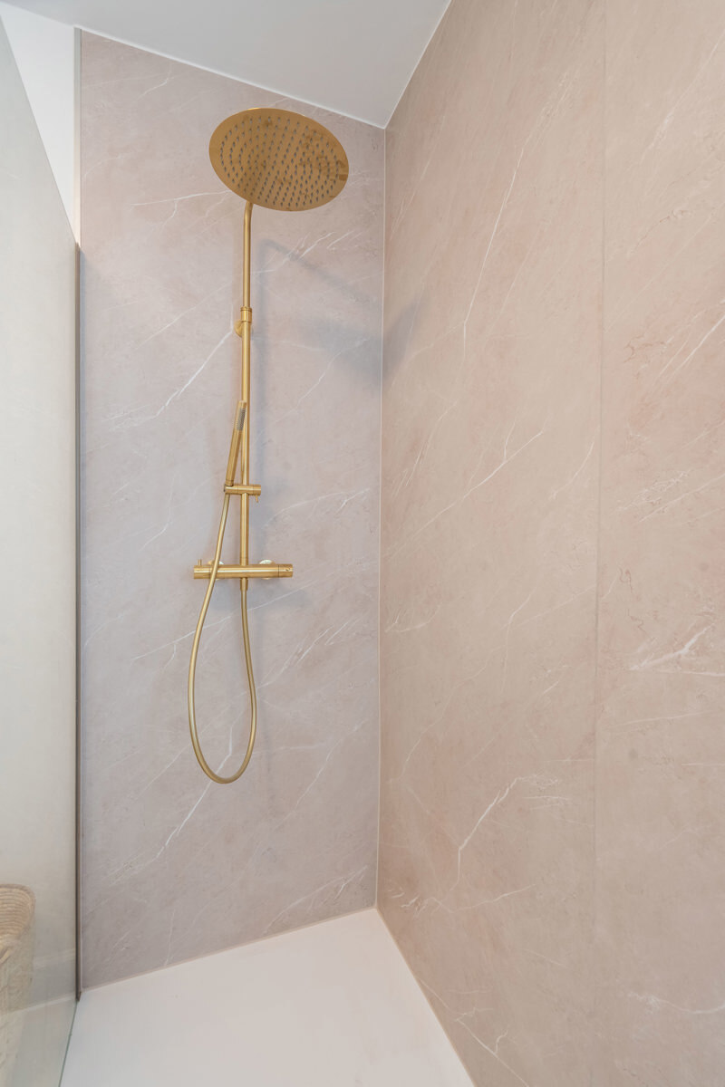 Via de nachthal is er toegang tot de badkamer, apart toilet en 2 ruime slaapkamers.