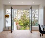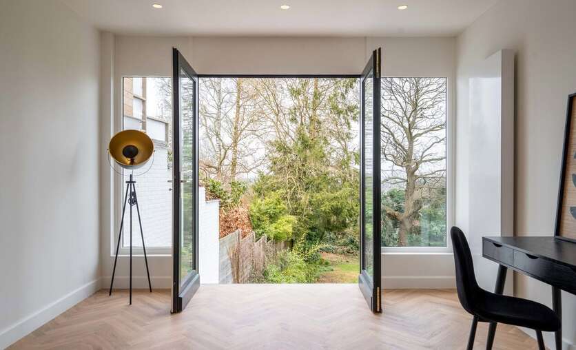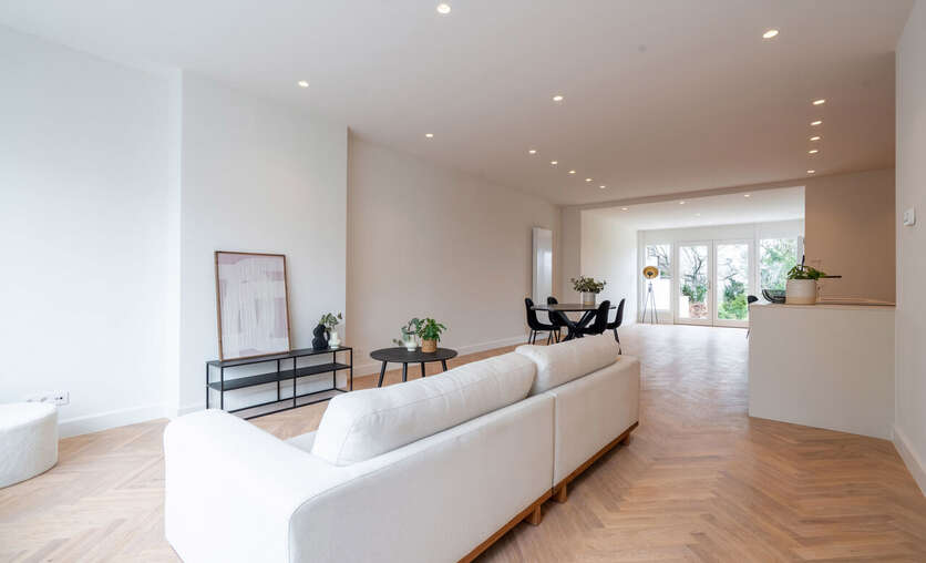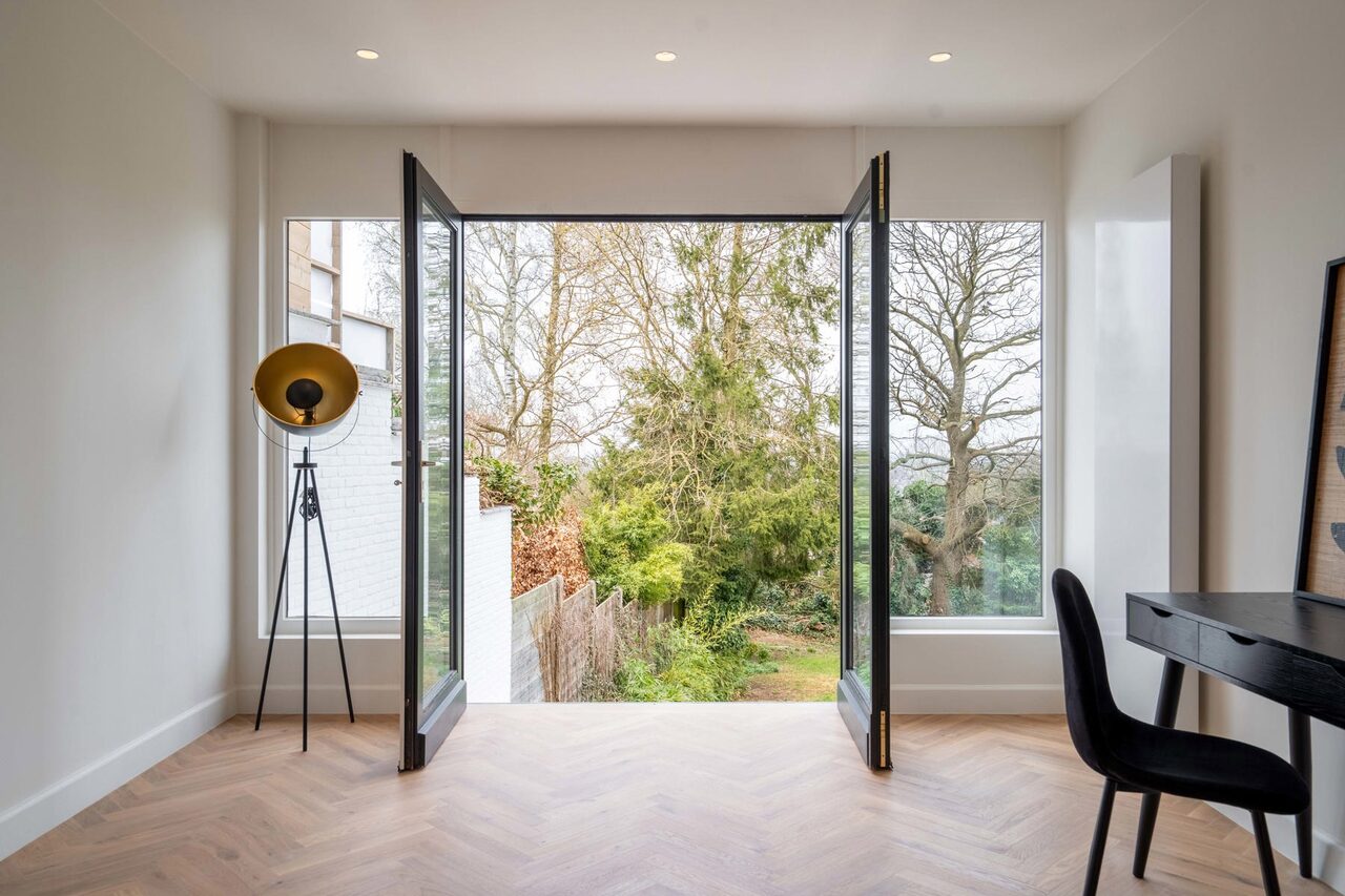 Er zijn tal van raampartijen aanwezig die zorgen voor veel lichtinval.