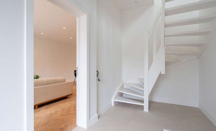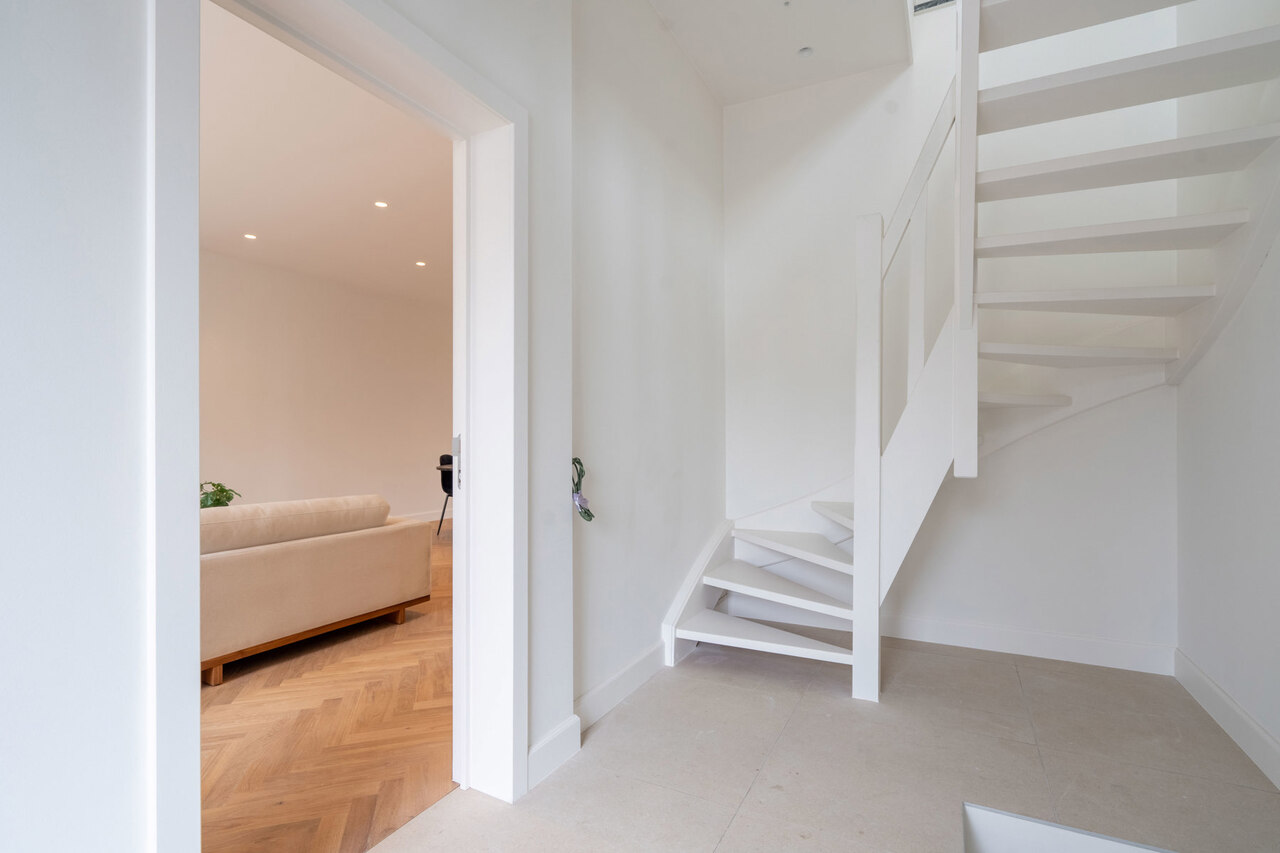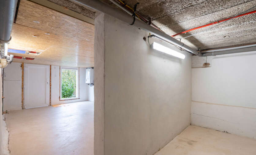Vanuit het appartement is er de rechtstreekse toegang naar de volledig private kelderverdieping die ook toegang heeft tot de tuin.