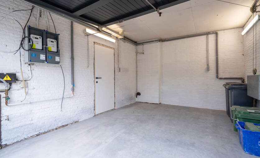 Hier vinden we de ruime berging met CV, wasmachine/droogkast,..