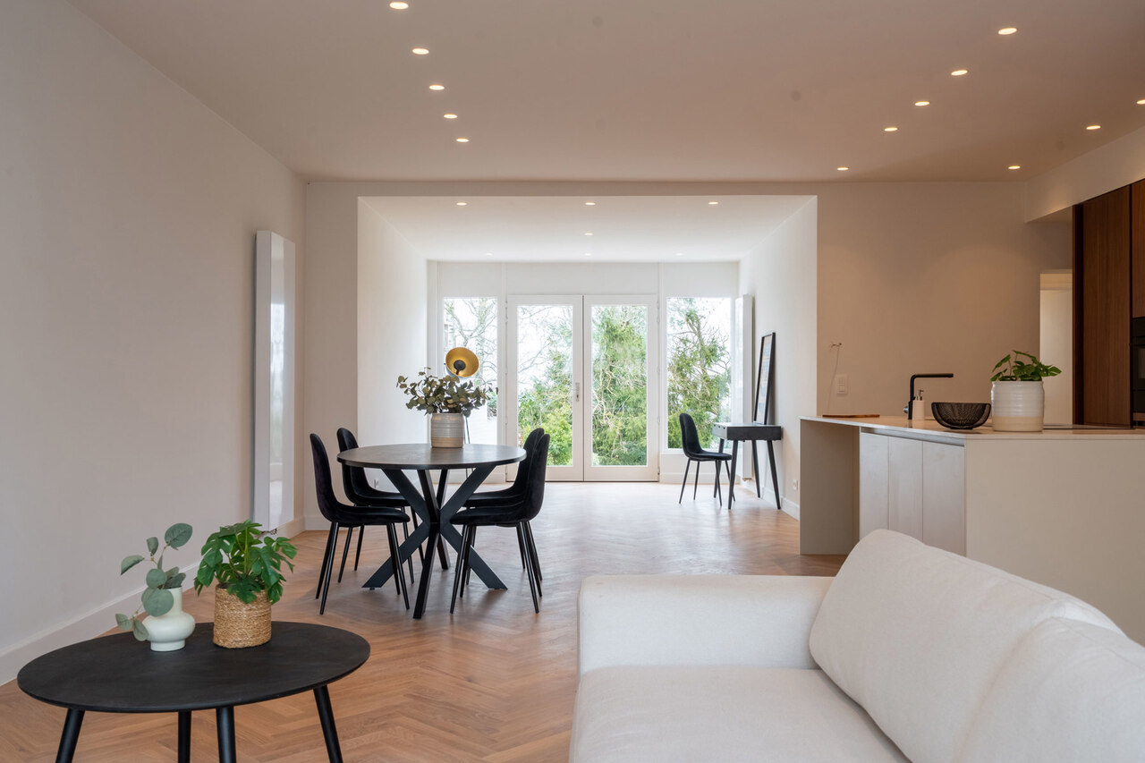 Uitzonderlijk ruim en recent (2025) gerenoveerd gelijkvloers appartement met private tuin en uniek uitzicht.