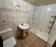 Deze geeft enerzijds toegang tot de berging en badkamer, dewelke ingericht is met ligbad, toilet, lavabo, ...