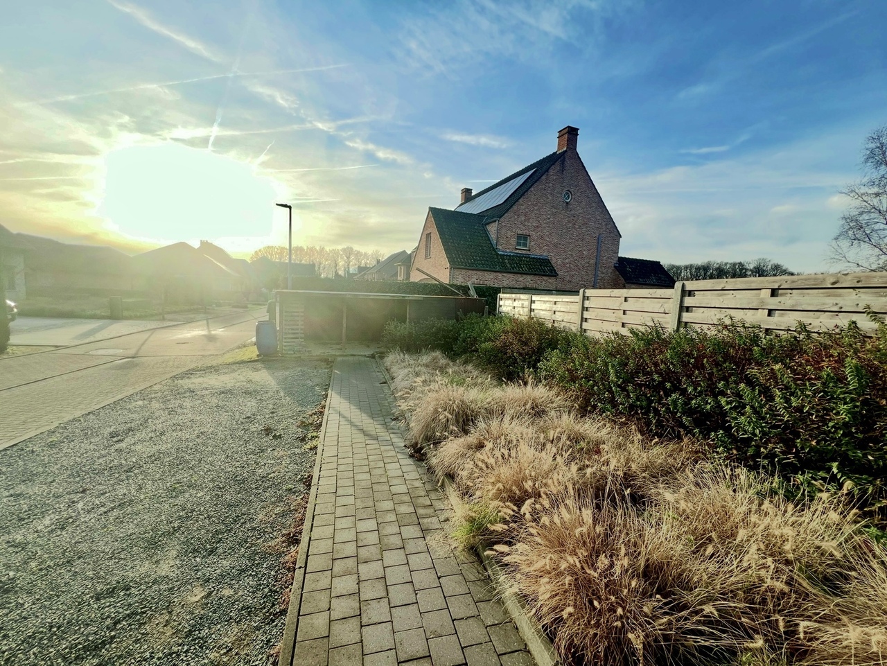 Via de voordeur of oprit kunnen we de woning betreden.