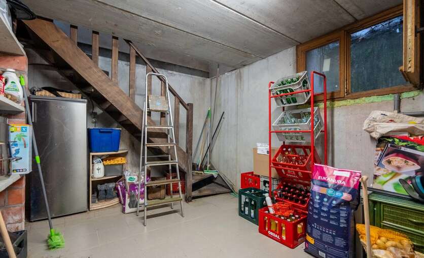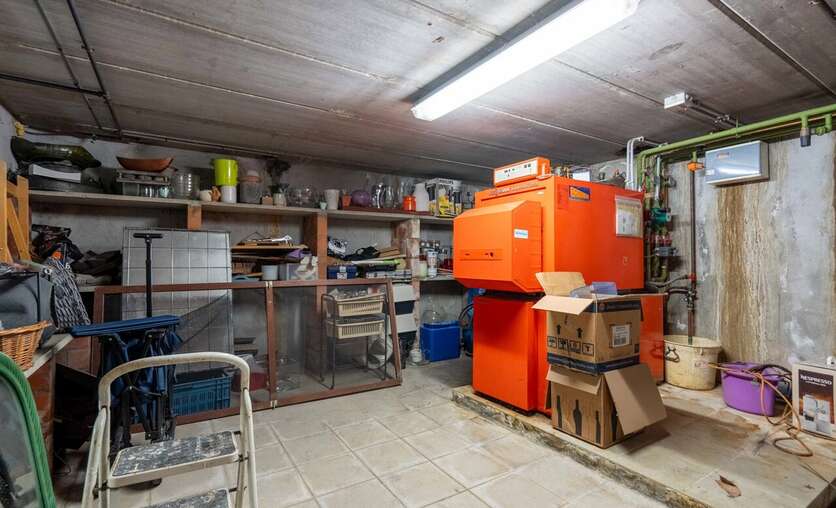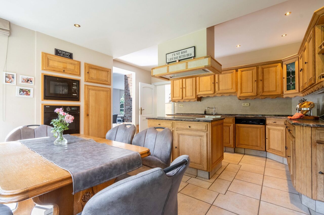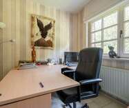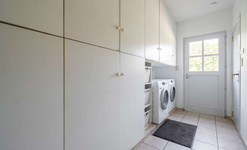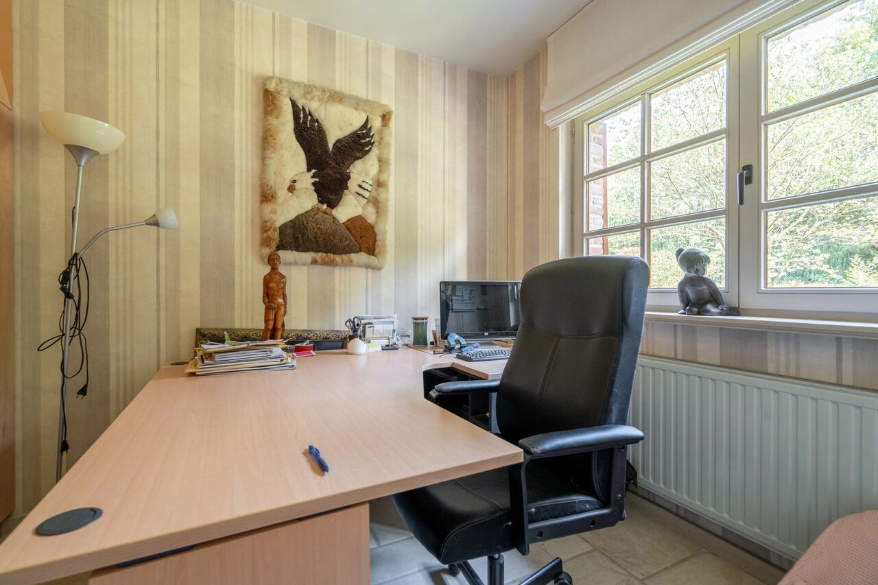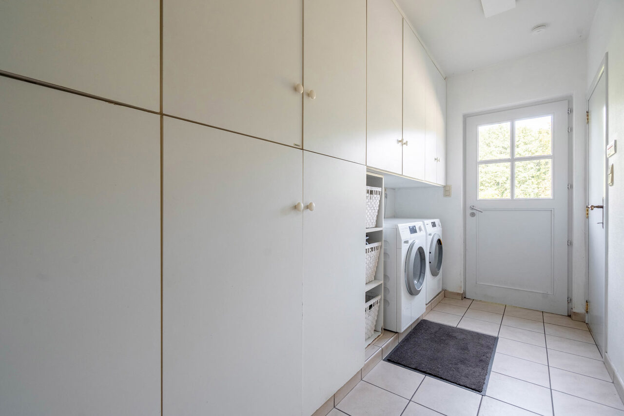 Op het gelijkvloers vinden we verder nog een bureaukamer, waskamer/technische ruime, gastentoilet en toegang tot de kelder.