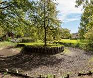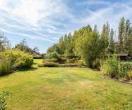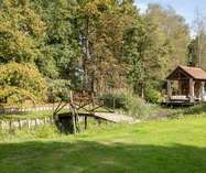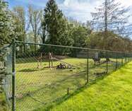 Aan de rechterzijde van het domein vinden we plek voor dieren, aan de achterzijde hebben we een prachtige vijver, dit alles omringd door prachtige bomen, hoog- en laagstammig, alsook bloemen, hagen en struiken.