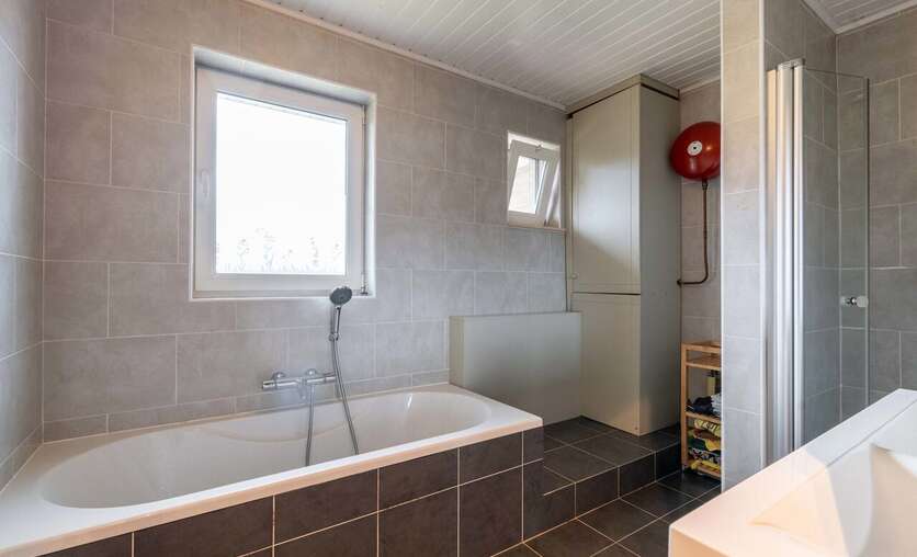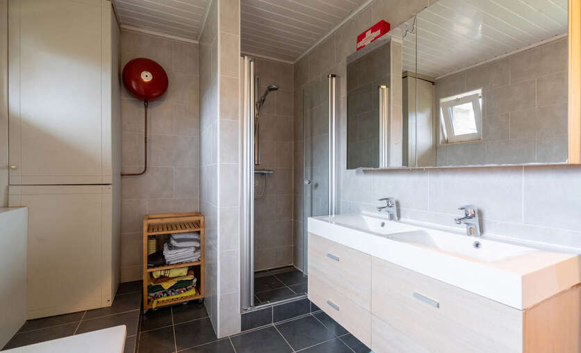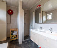 Deze is ingericht met een ligbad, douche en dubbel lavabomeubel.