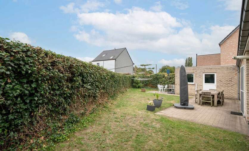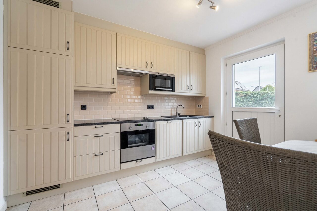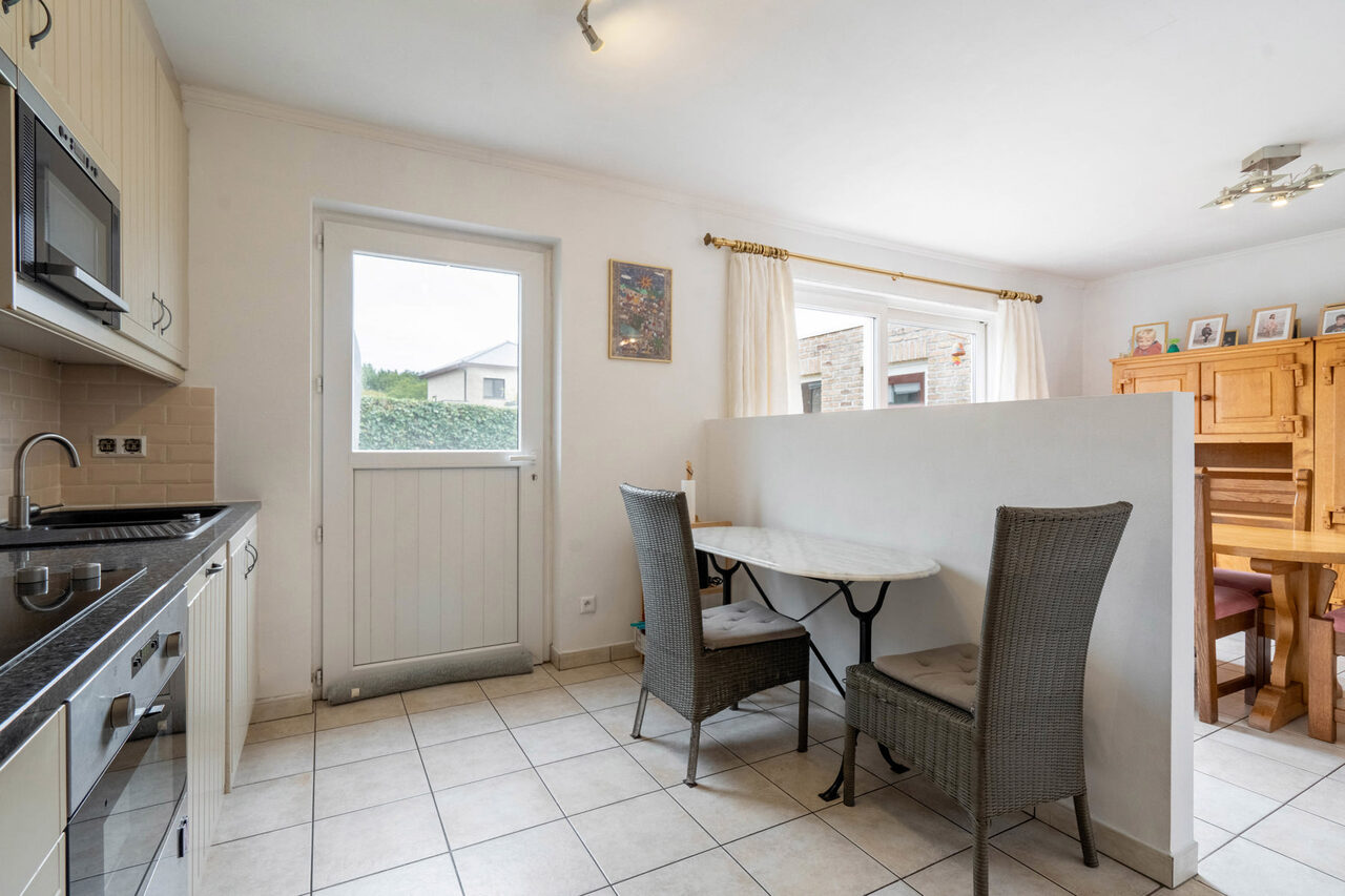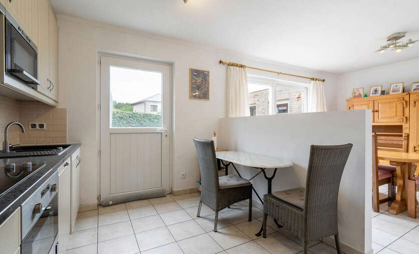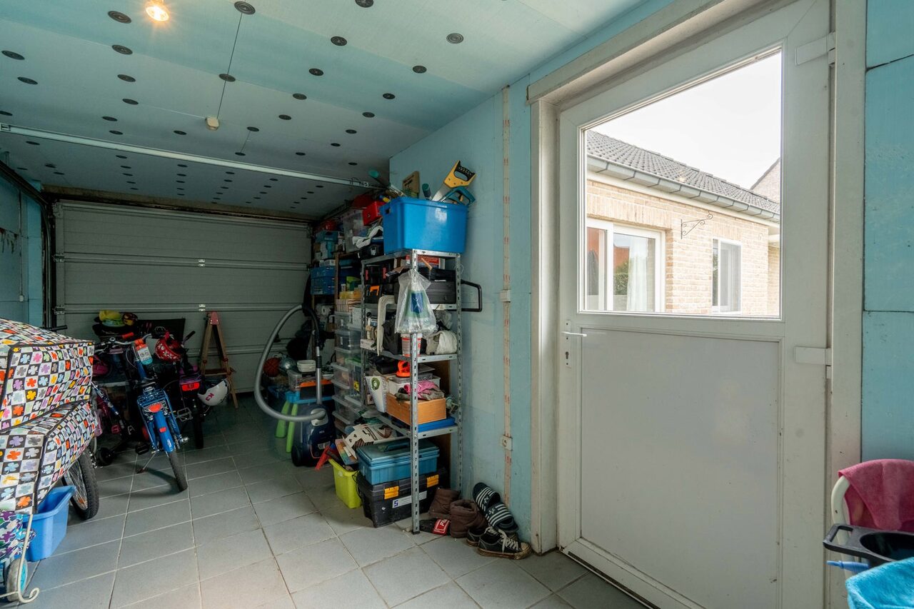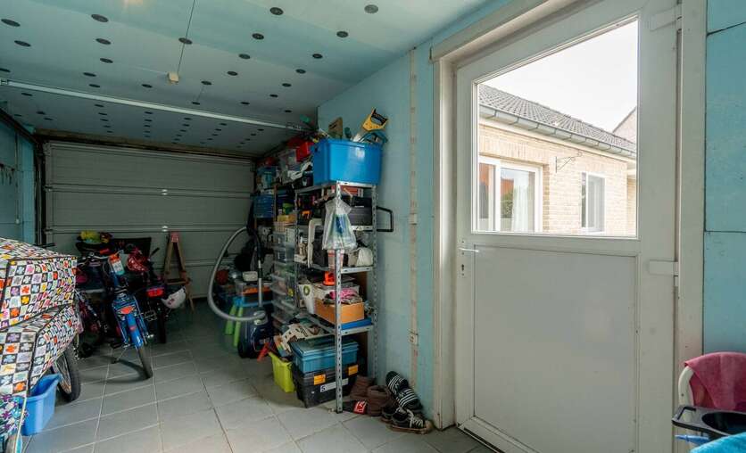 Langs de keuken is er de toegang tot het terras en de tuin alsook de garage, dewelke over voorziening beschikt voor wasmachine/droogkast.