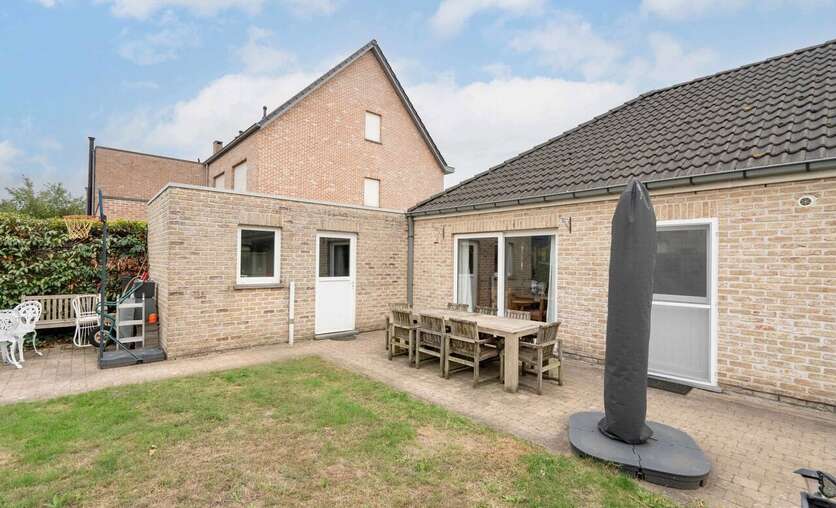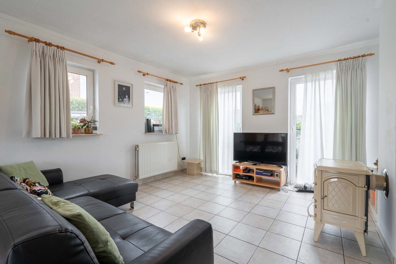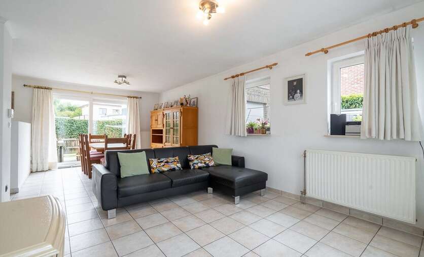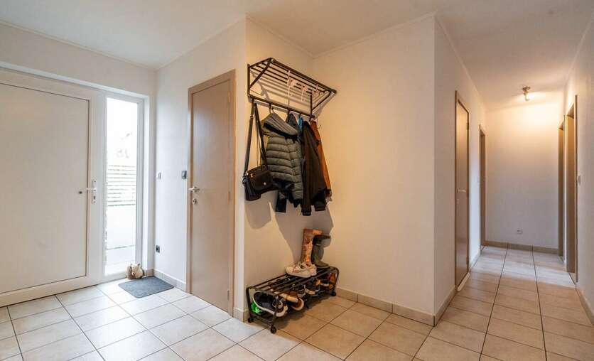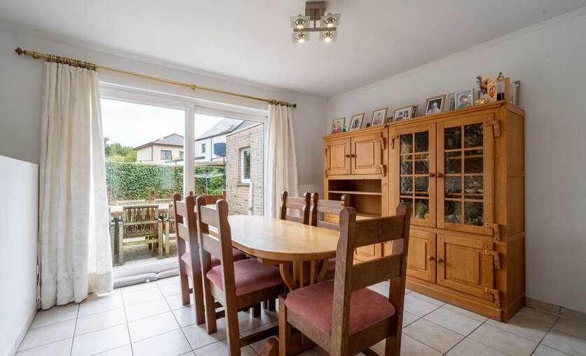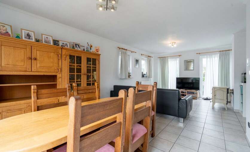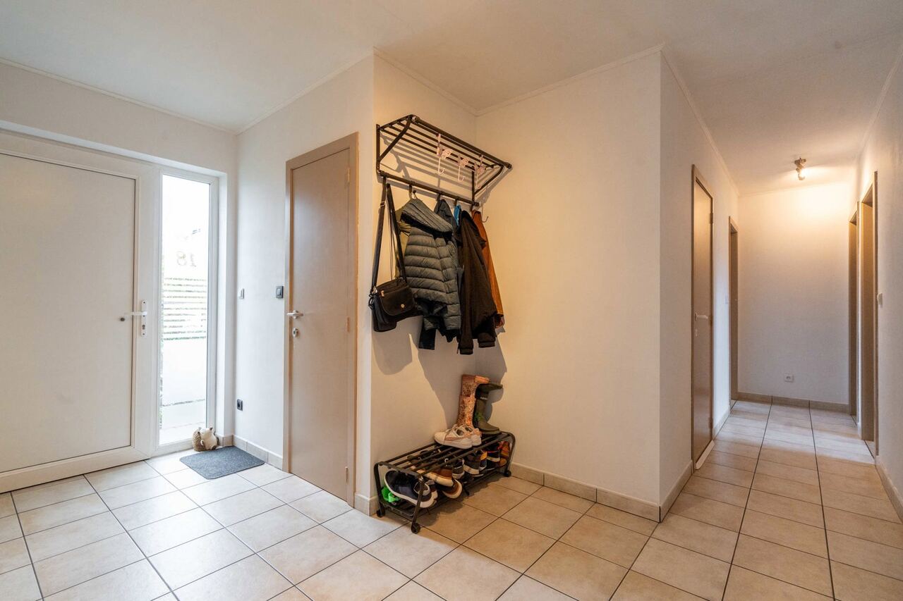 Langs de keuken is er de toegang tot het terras en de tuin alsook de garage, dewelke over voorziening beschikt voor wasmachine/droogkast.