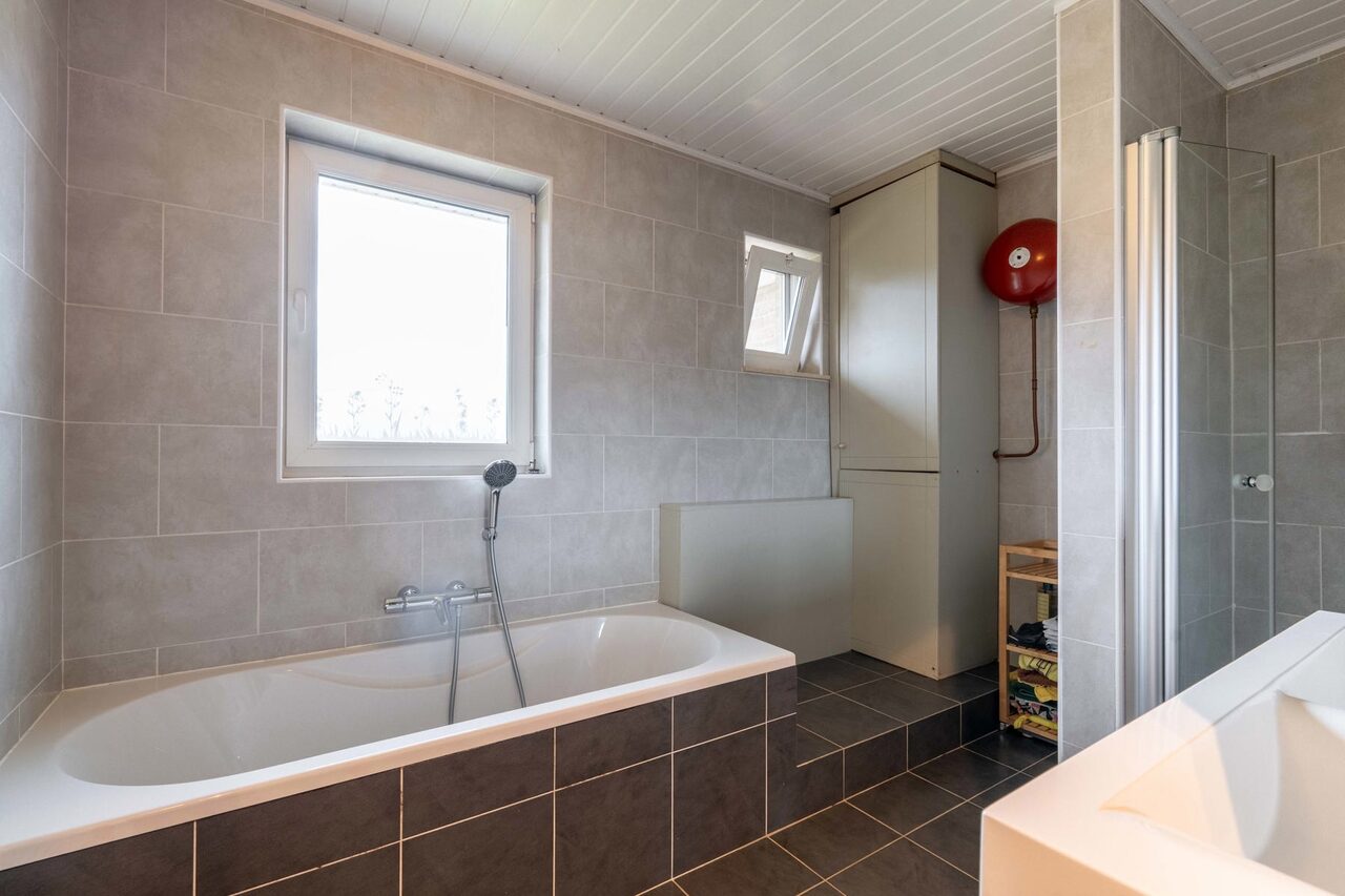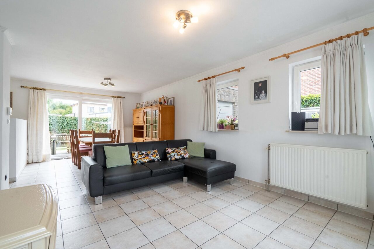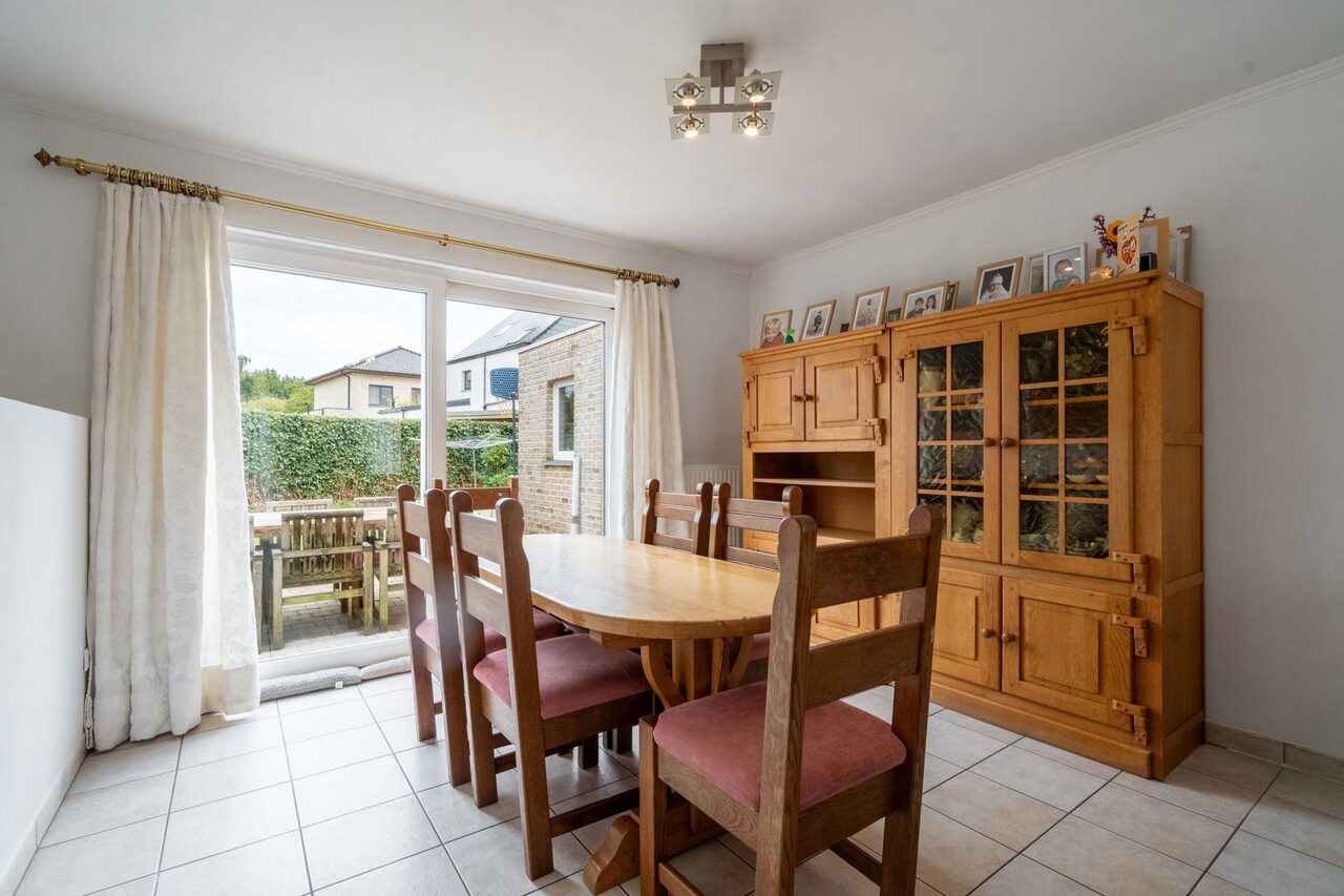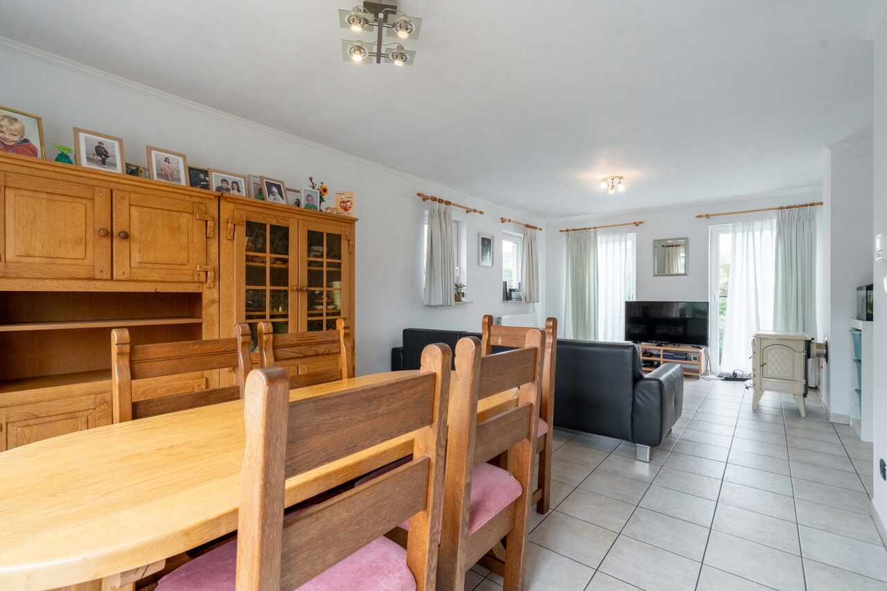Langs de keuken is er de toegang tot het terras en de tuin alsook de garage, dewelke over voorziening beschikt voor wasmachine/droogkast.