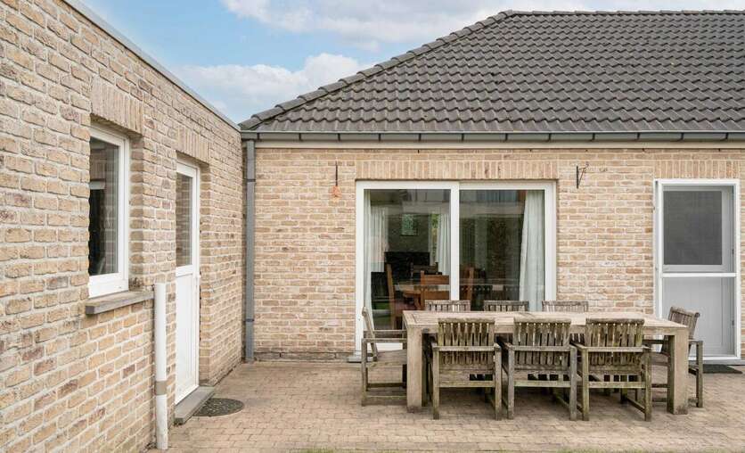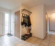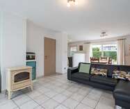 Hier vinden we reeds het gastentoilet en de toegang tot de gezellige leefruimte en zithoek met houtkachel.