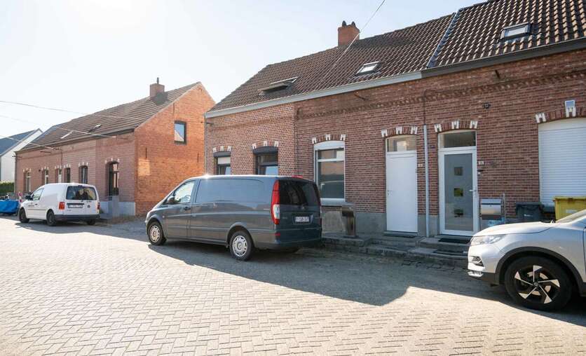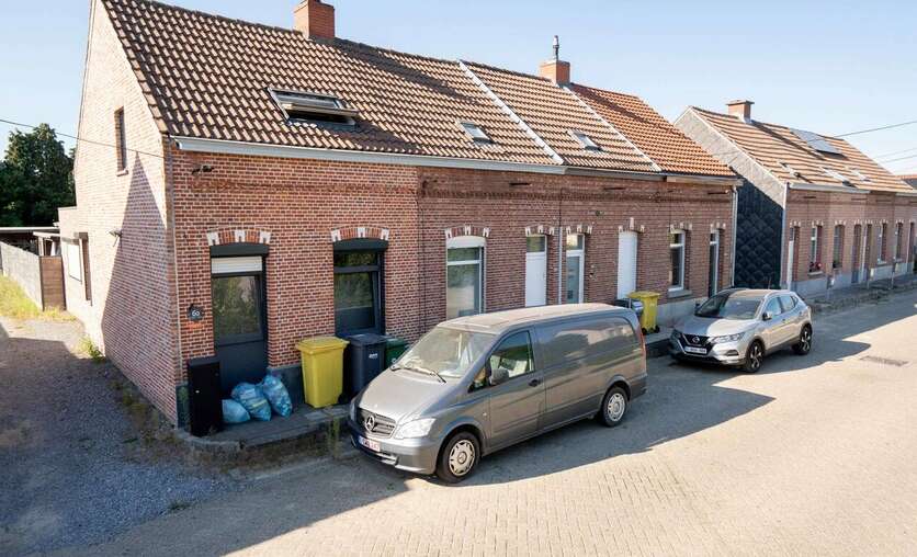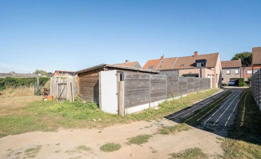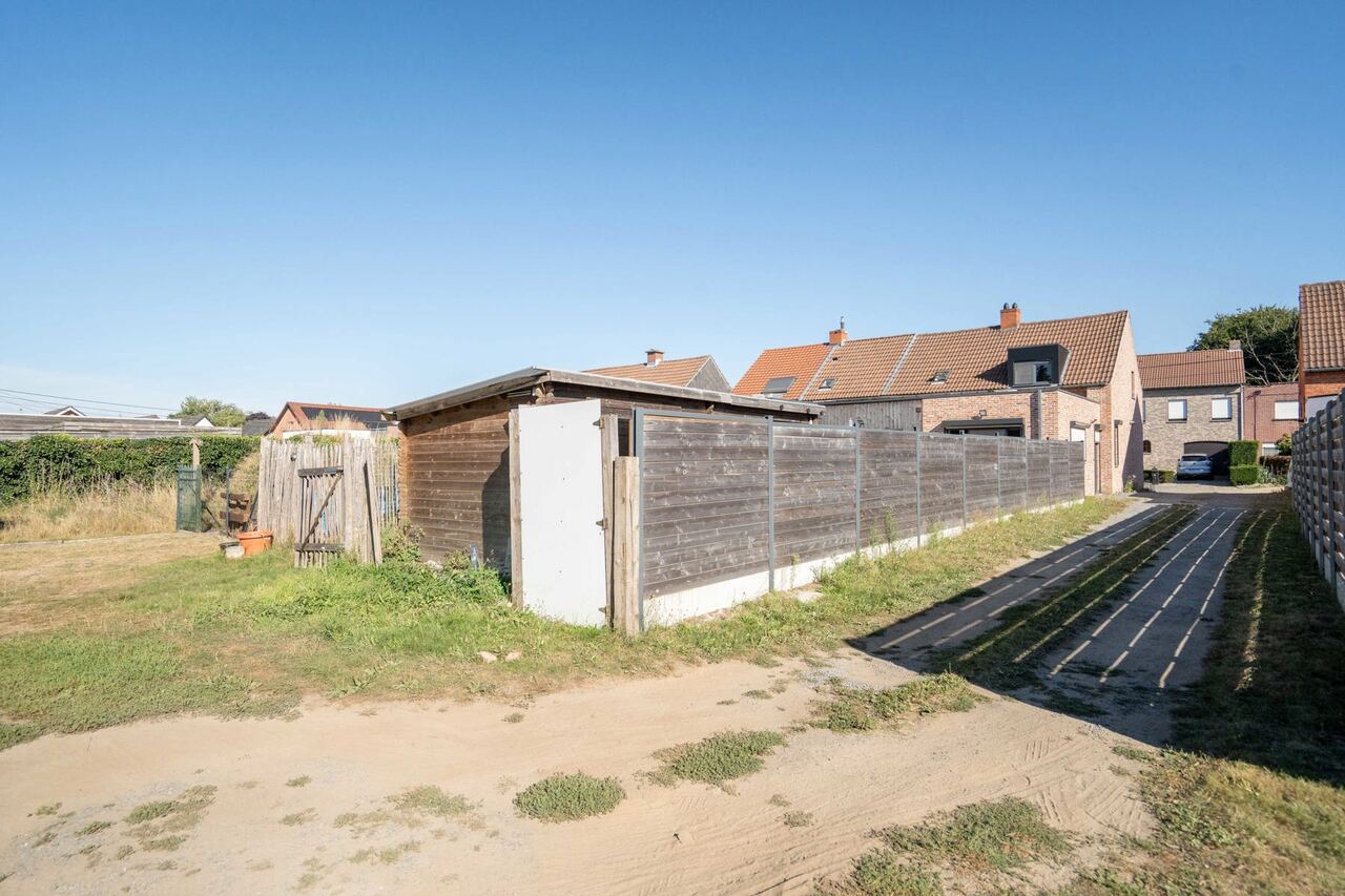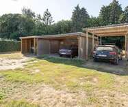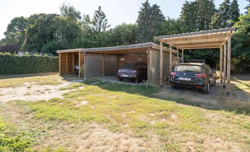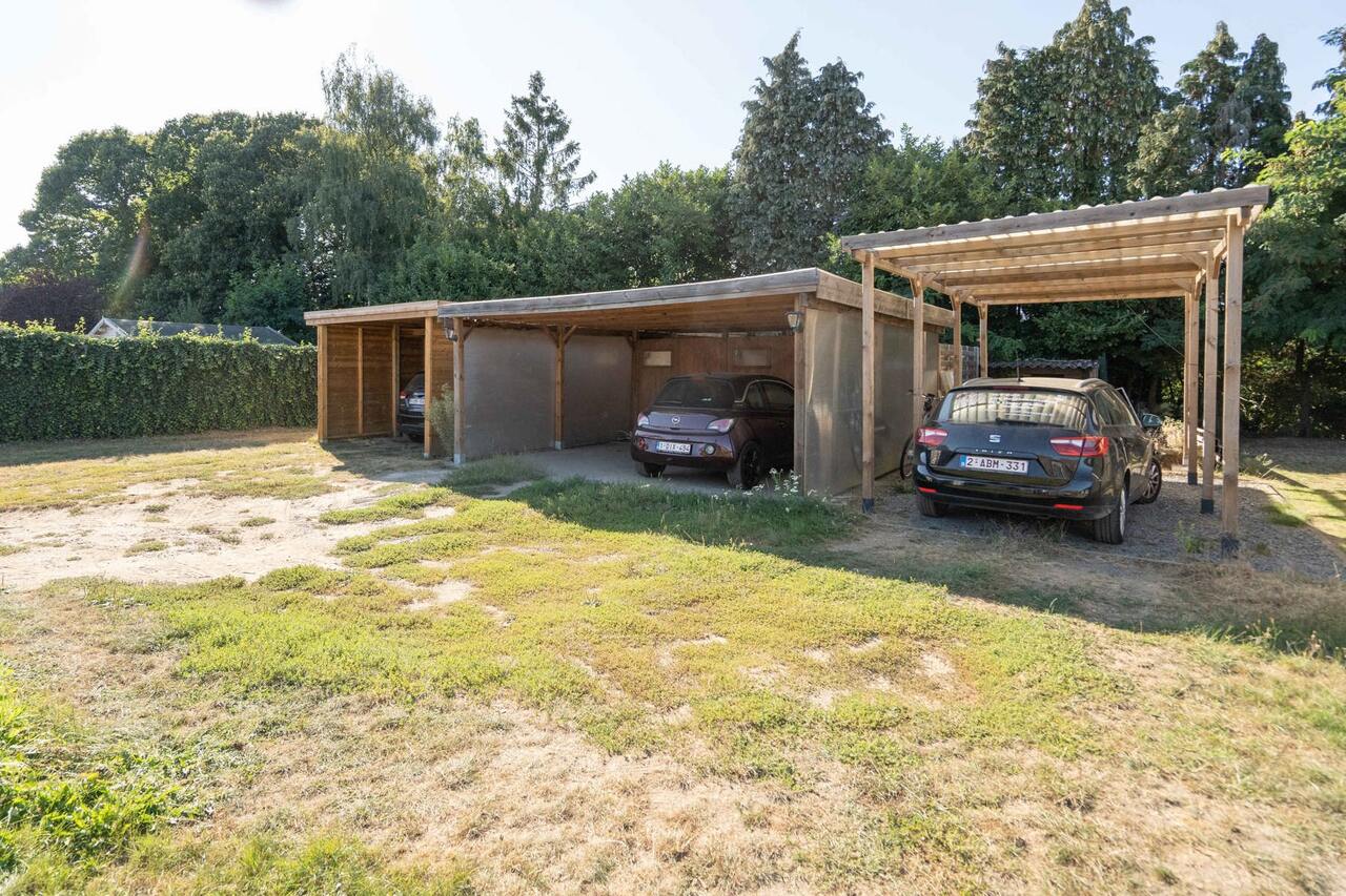 Het pand heeft een carport achteraan het perceel, toegankelijk via een oprit aan de linkerzijde.