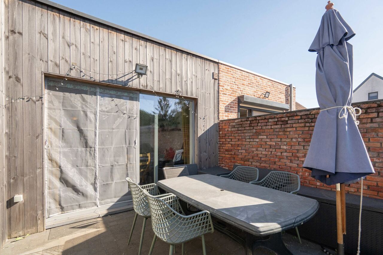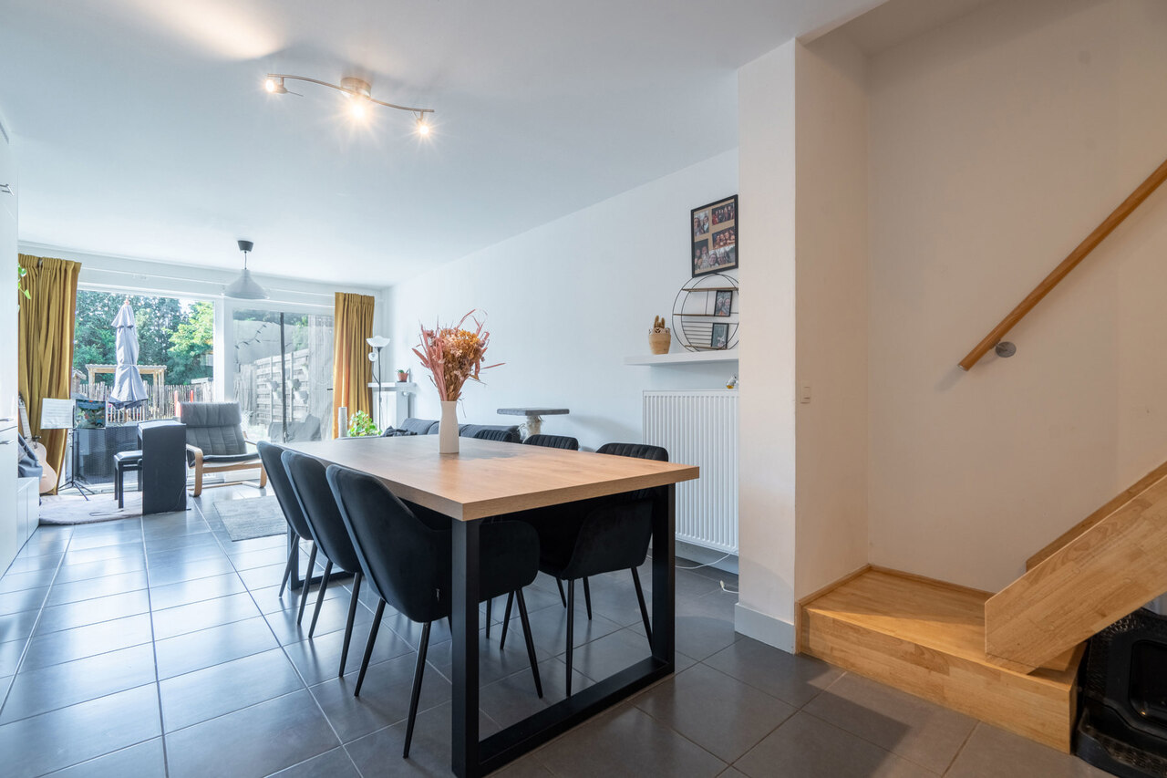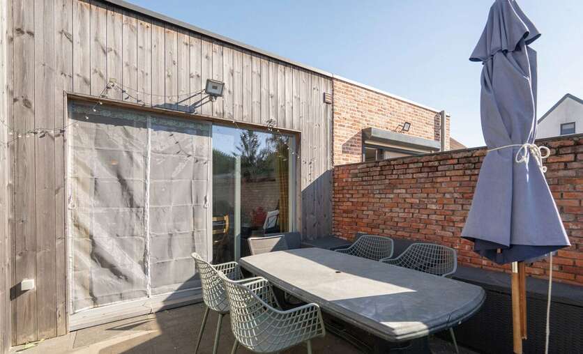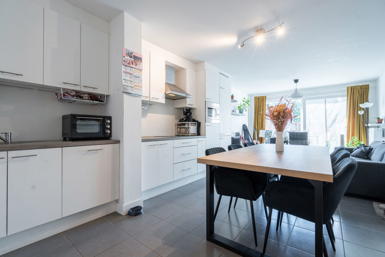 Vanuit de keuken en leefruimte hebben we tevens een prachtig zicht over de achtergelegen afgesloten tuin met aangelegd terras.